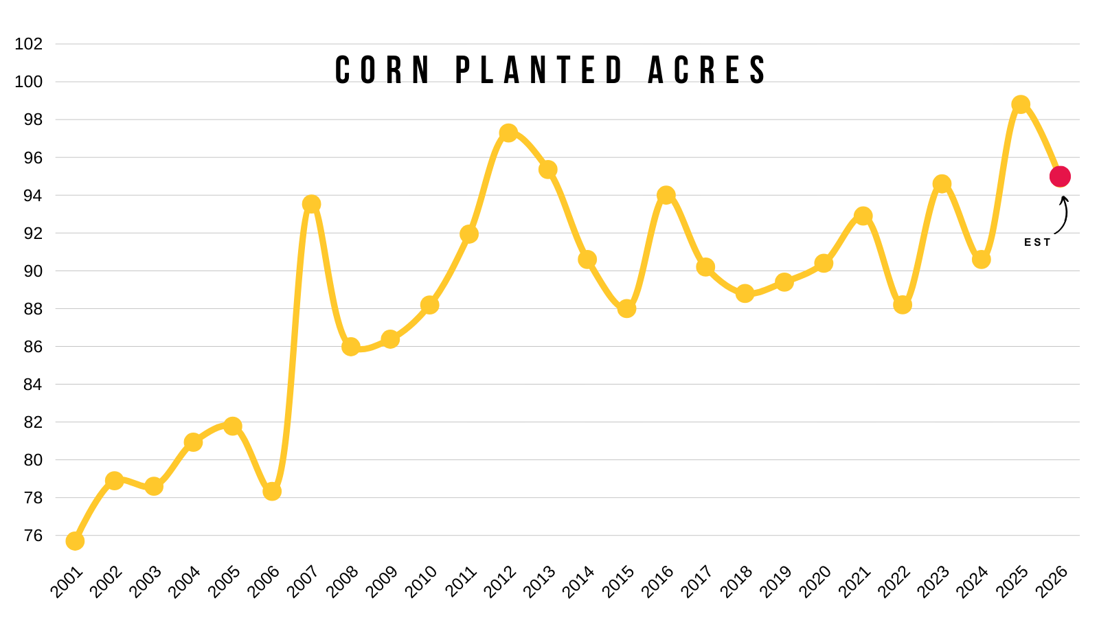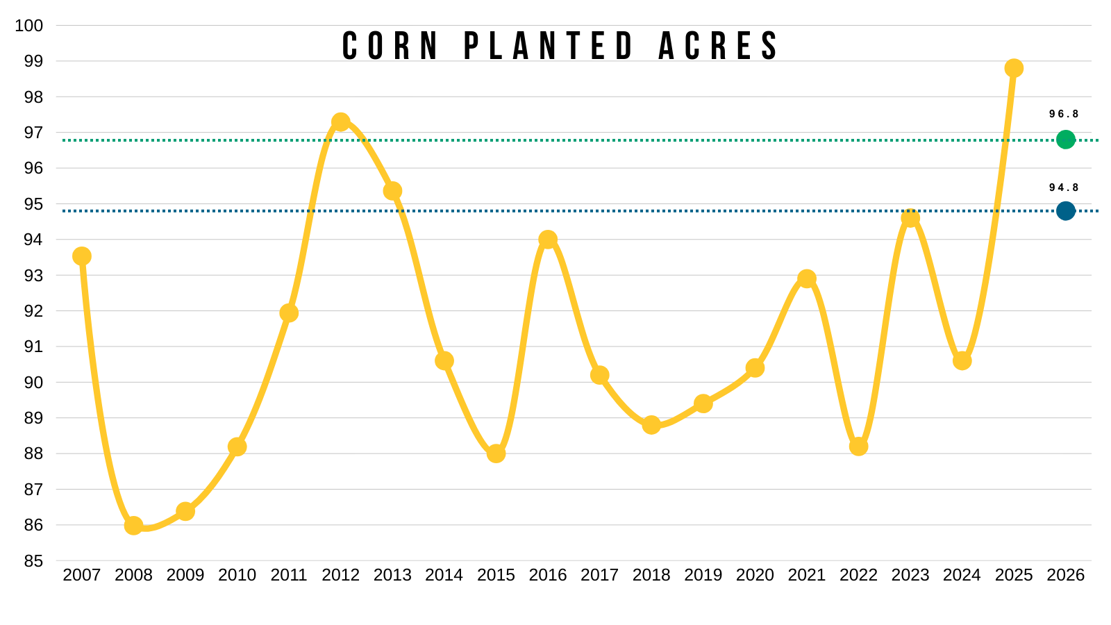 Planted acres estimate is 94.9 million. Down about -4 million from last year's 98.8 million.