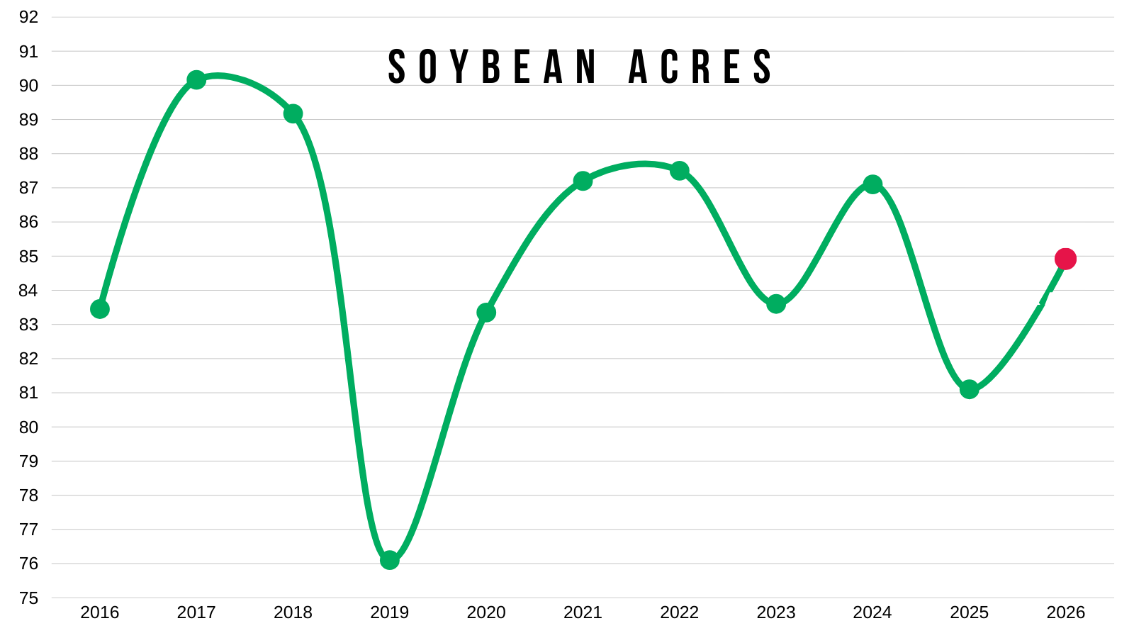 The recent jump in beans should prevent us from seeing 98 to 99 million acres of corn like last year.
