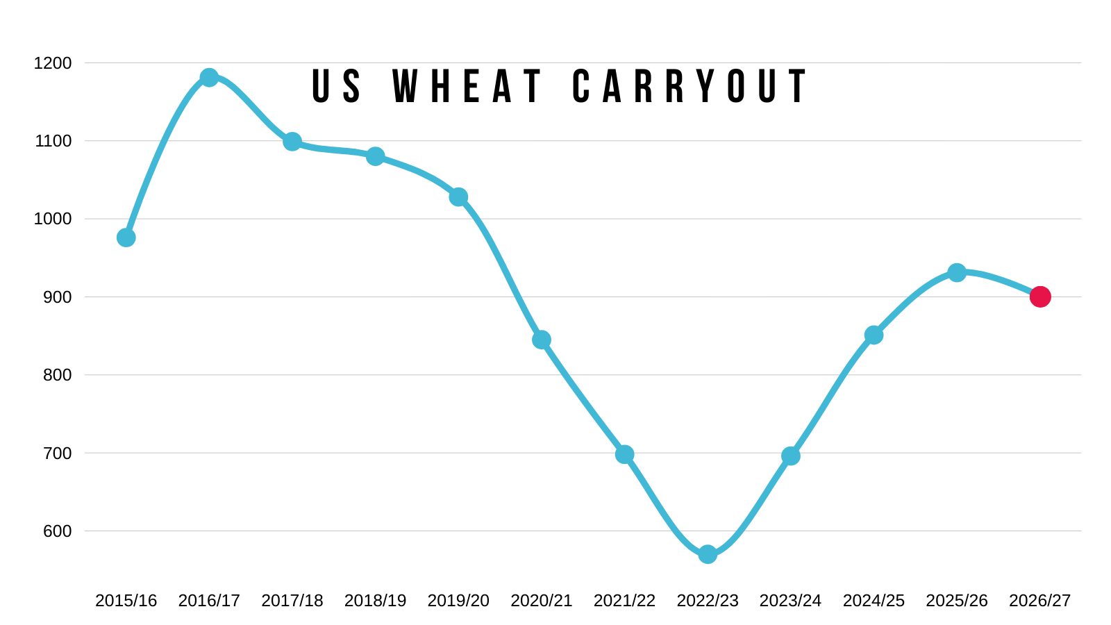 Carryout is expected to be down slightly vs last year by just -30 million bushels.