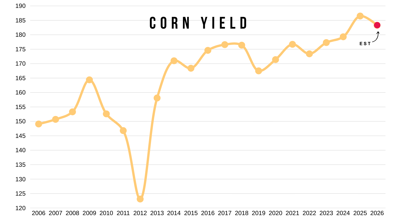 Yield is estimated at 183.3 bpa. Down from last year's 186.5 bpa.