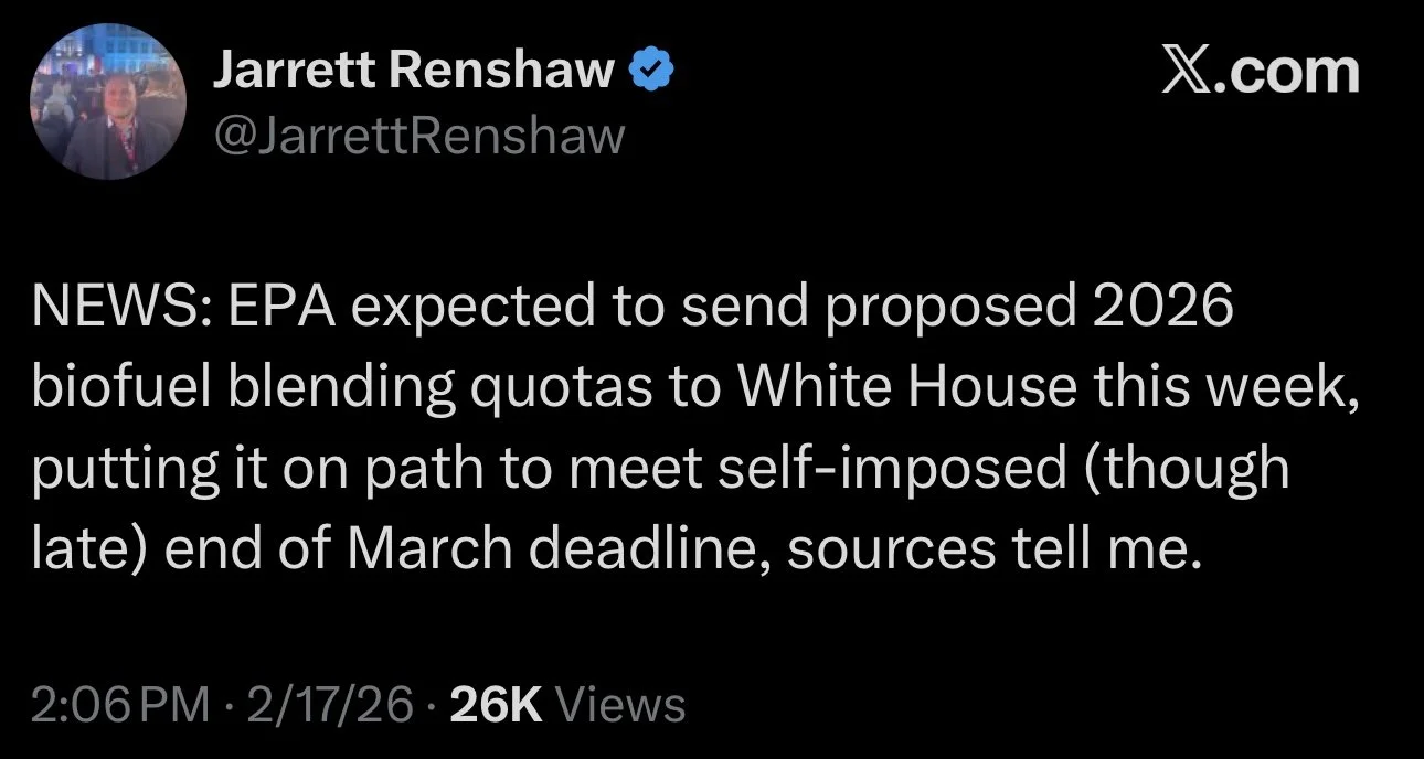 We will be receiving the original acre outlook along with the USDA's starting yield they will be using on the new crop balance sheets.