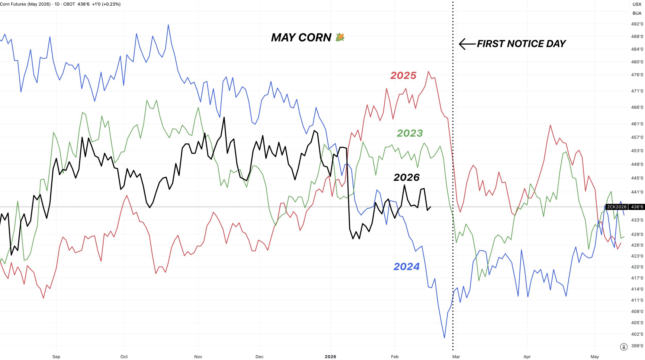 Export inspections are over +300 million bushels ahead of the USDA's pace. But that doesn’t mean we have to go screaming higher here. We have a ton of supply to chew through.