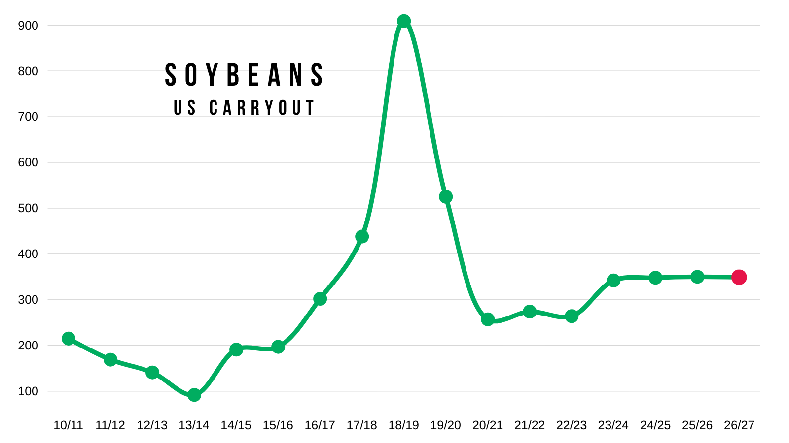 Carryout is expected to remain the same as old crop. Right around 350 million bushels.