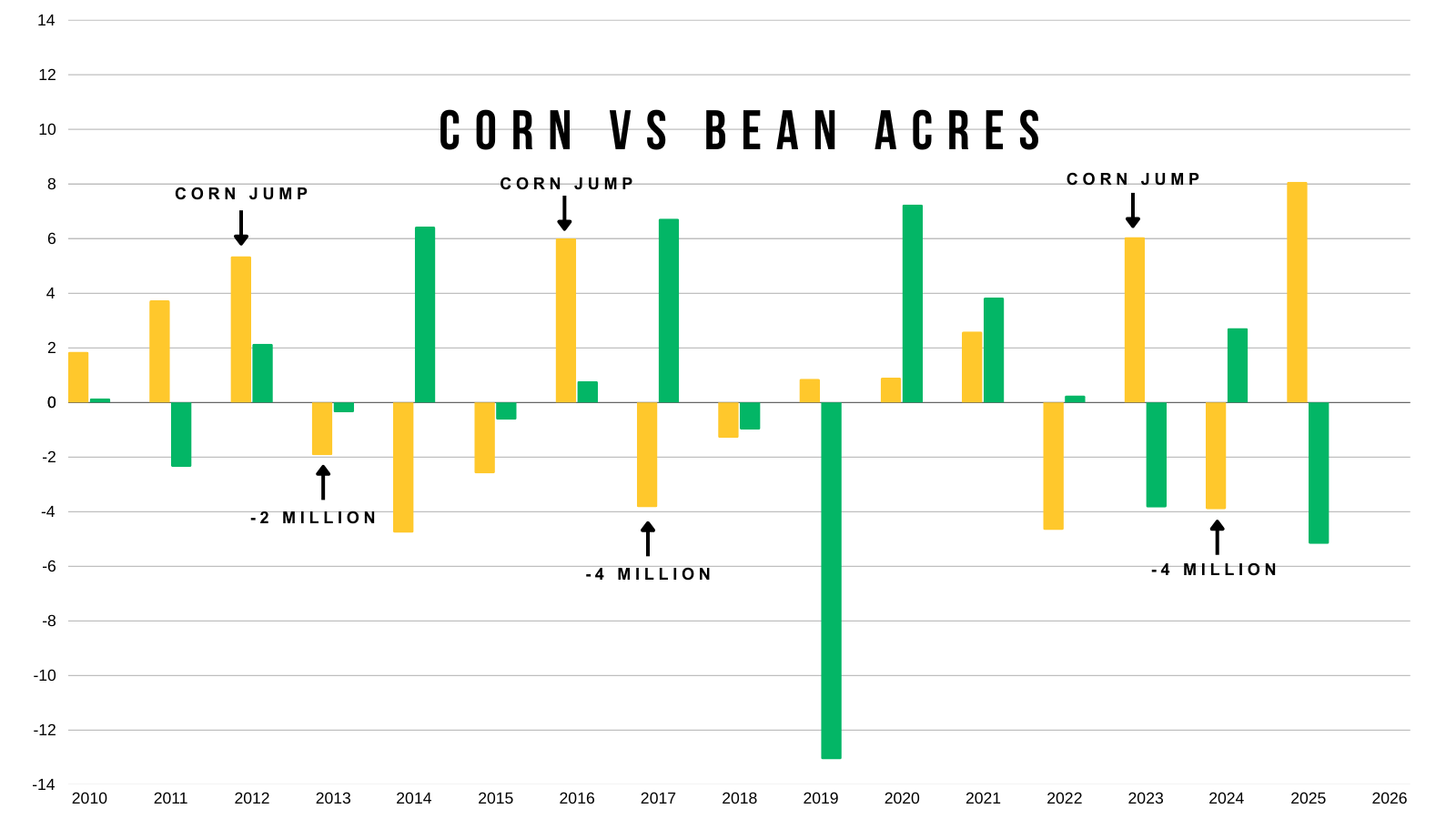 2023 we saw a big jump in corn acres. In 2024 we dropped -3.90 million.