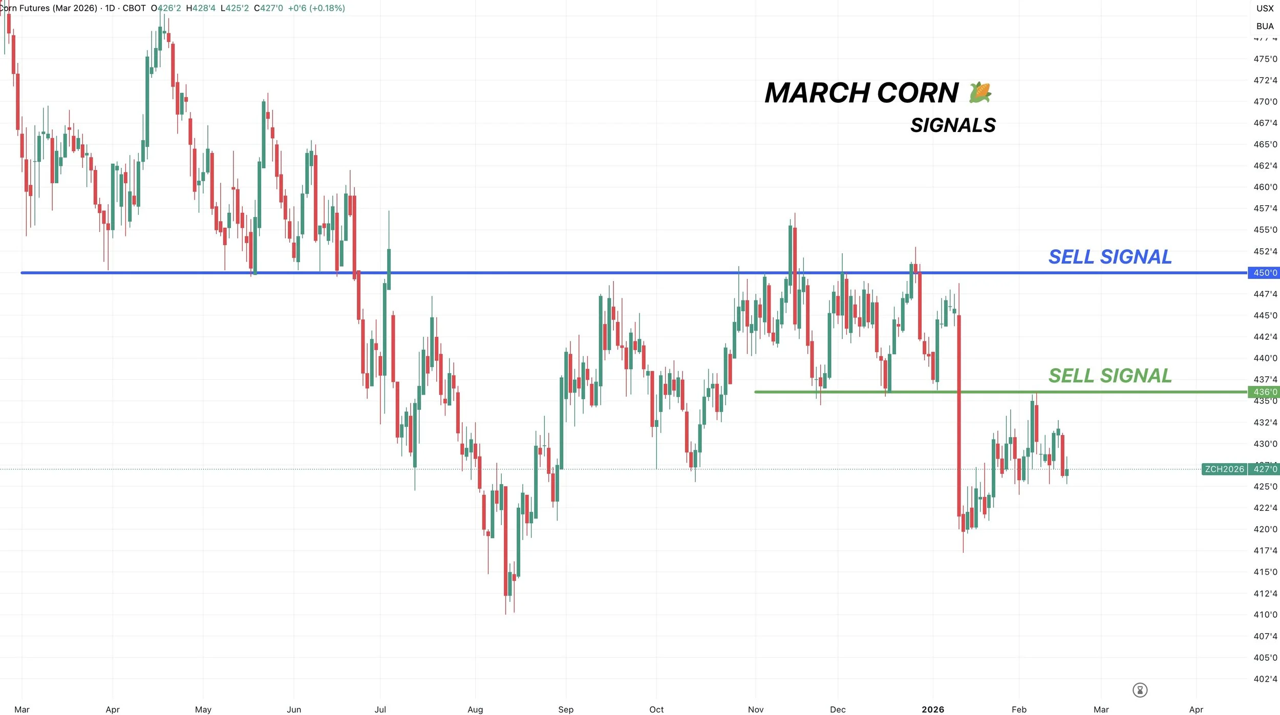 We sent a sell signal at $4.36 for March corn two weeks ago.