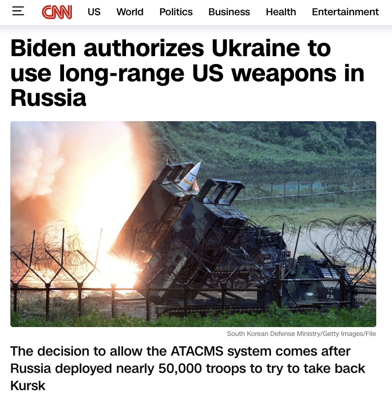Biden gave Ukraine the greenlight to use US-provided missiles to attack Russia.