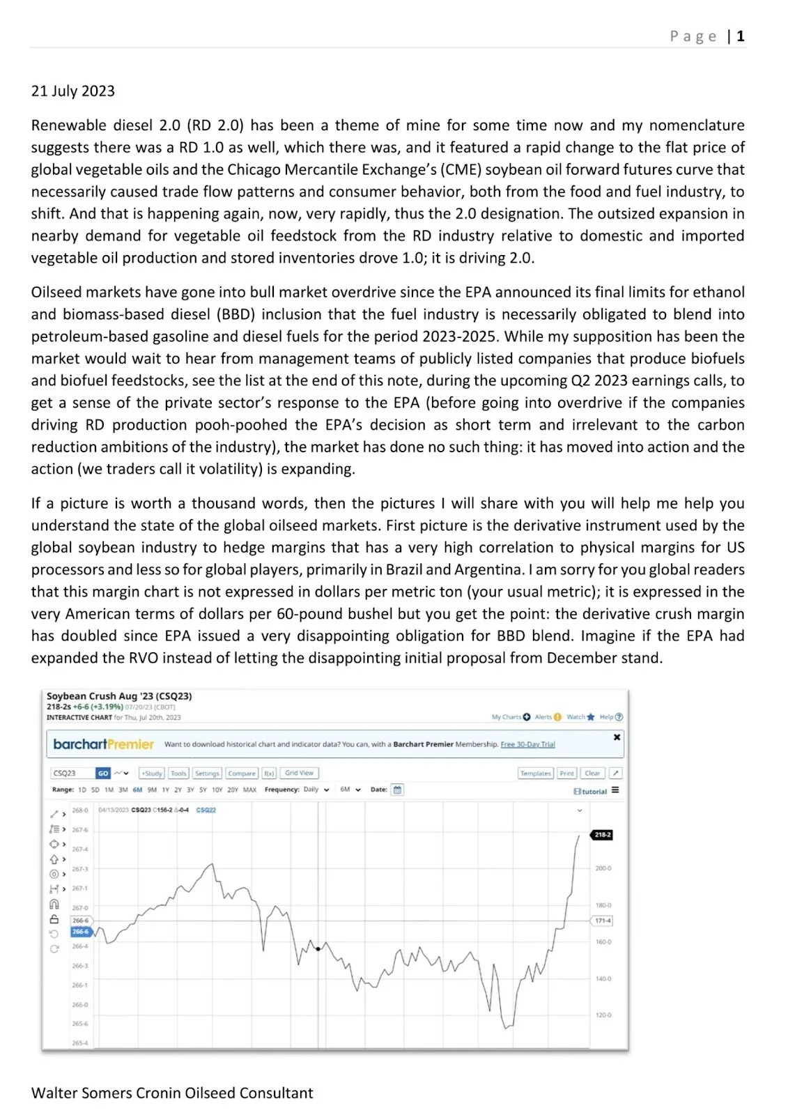 I agree with Roger’s statement “Don't’ even think about pricing new crop below $6.00. Prices will go higher. How soon is the question.”