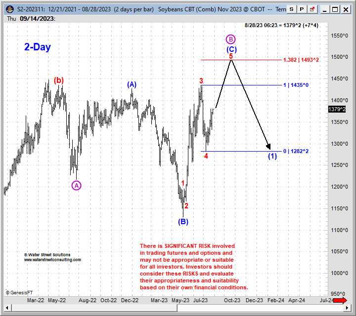 Taking a look at the charges, beans look great here. We remain in a solid uptrend from our recent lows. Today we closed above Monday's overnight highs where we gapped open. Next target is $14.03, which is a 79% retracement.