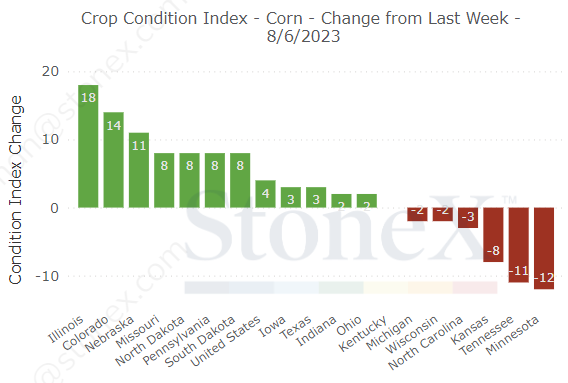 StoneX's official corn yield estimate based off their customer survey is 177 bpa. They also rose their yield model to 175 bpa up from last week's 172.5. They said this was due to the improved weather in August. I question whether or not the weather in August actually improved the crop as it is typically made in July.