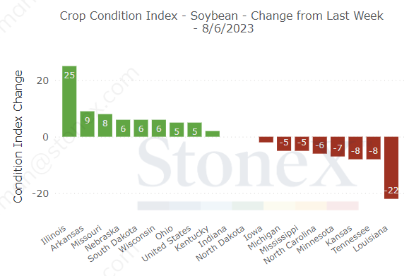 Where is the bottom for beans? It's tough to catch a falling knife. With the crop conditions showing improvement, wouldn’t be surprised to see us make another leg lower. The bottom might not come for a few more days or even a week or two, especially given how ideal the weather situation looks.