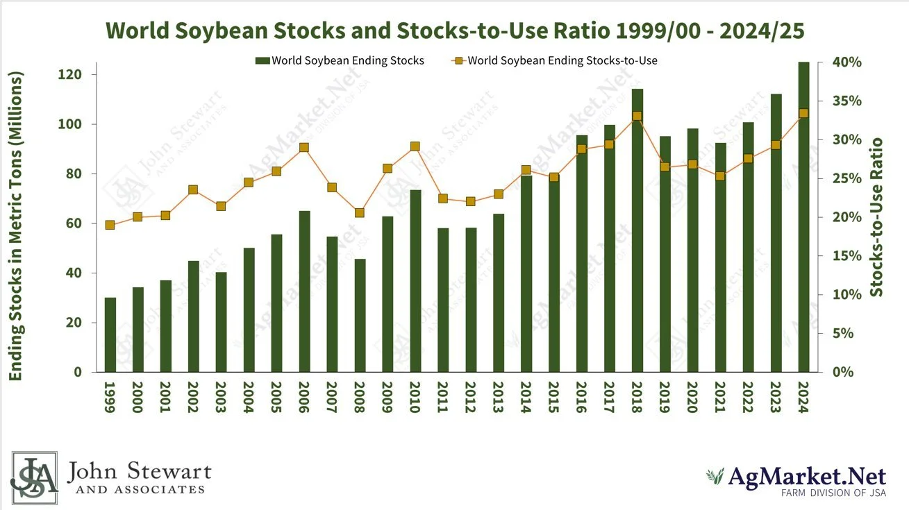 Our global stocks to use ratio is at an all time high. Brazil is getting rain now, so the chance for a delayed planting story are gone.