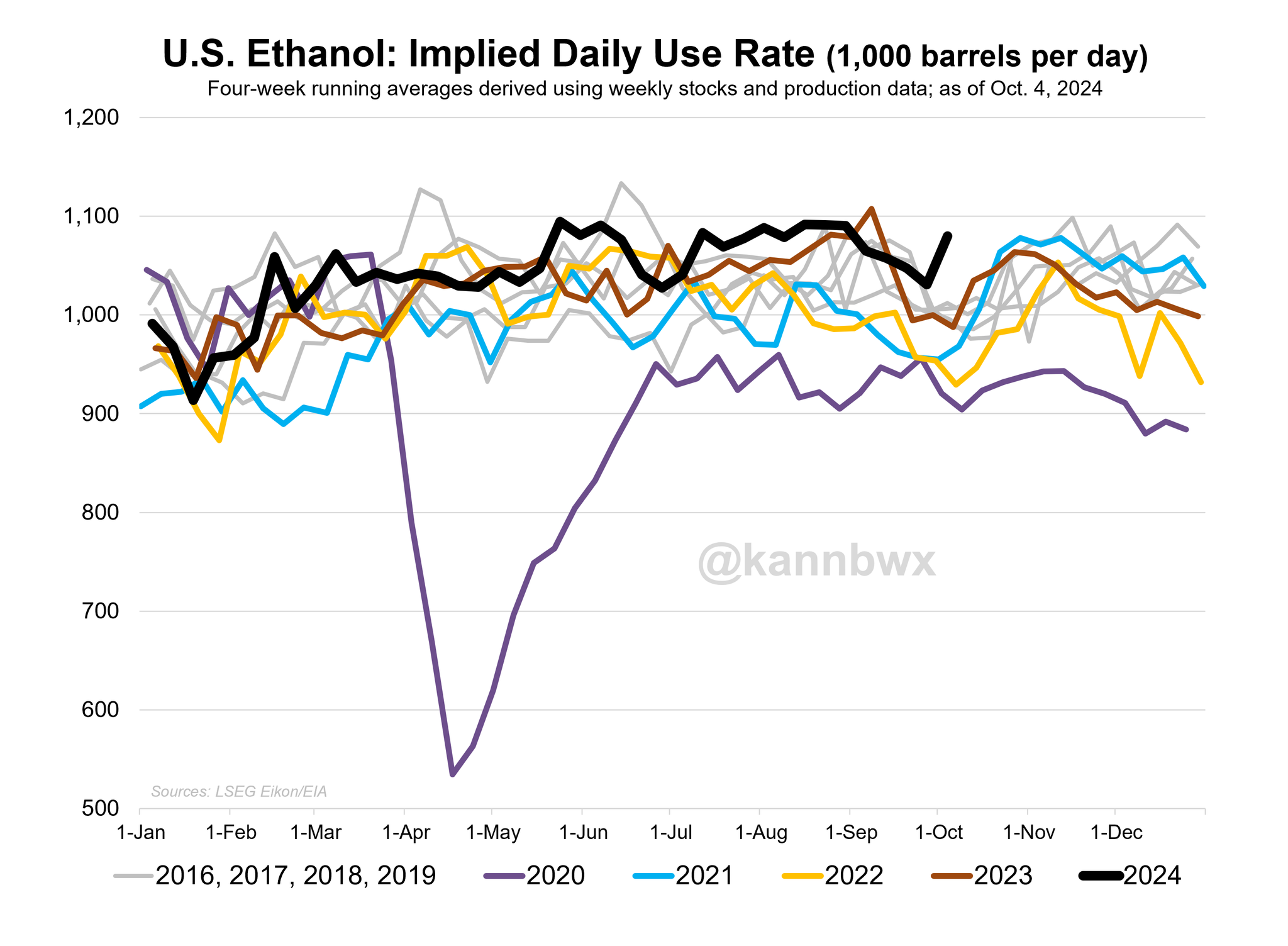 Next I wanted to take a look at ethanol demand.