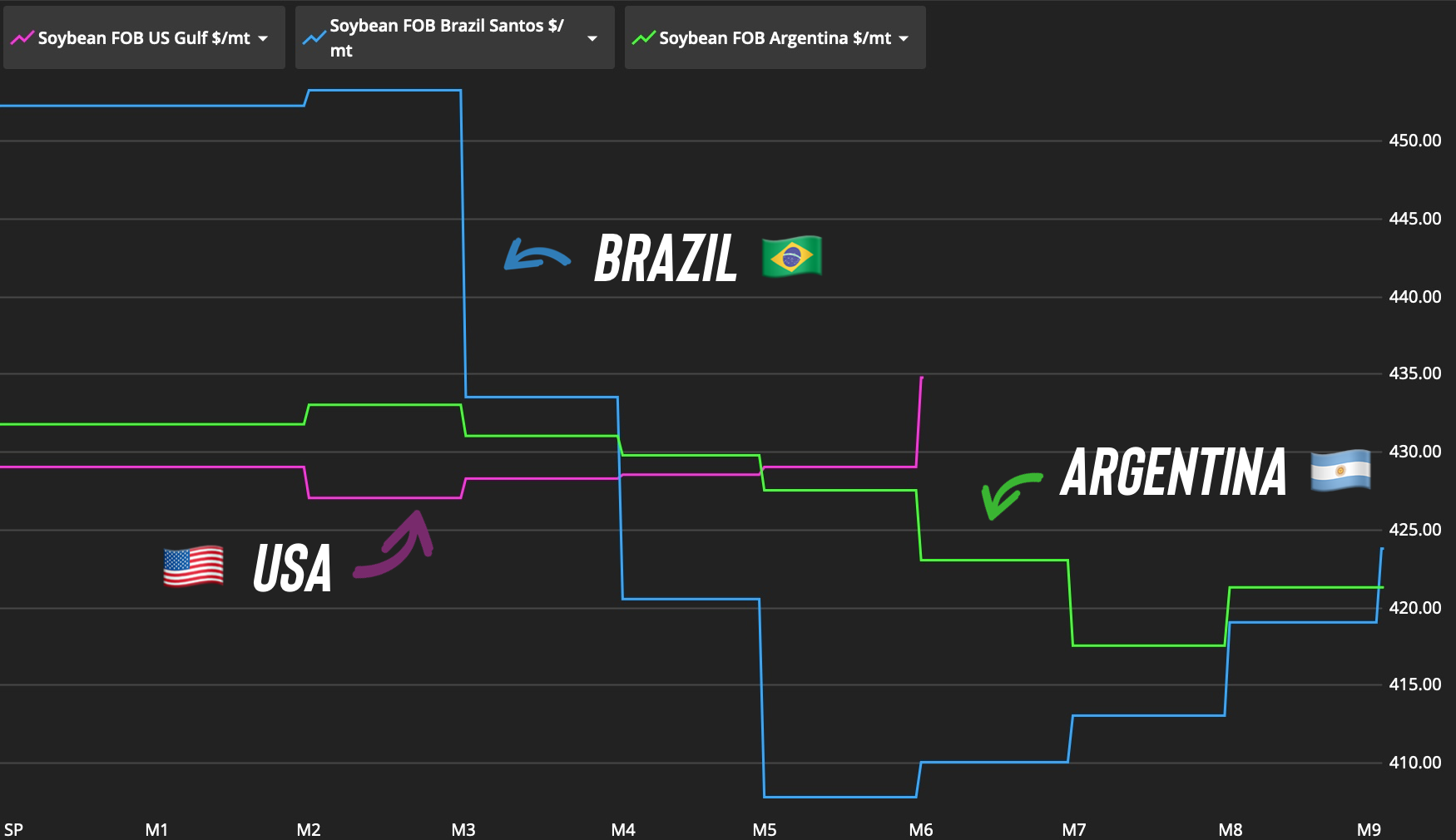 One positive beans do have is that they are very competitive on the global export market. Beans off the US Gulf are the cheapest in the world until Brazil's crop comes online early next year.