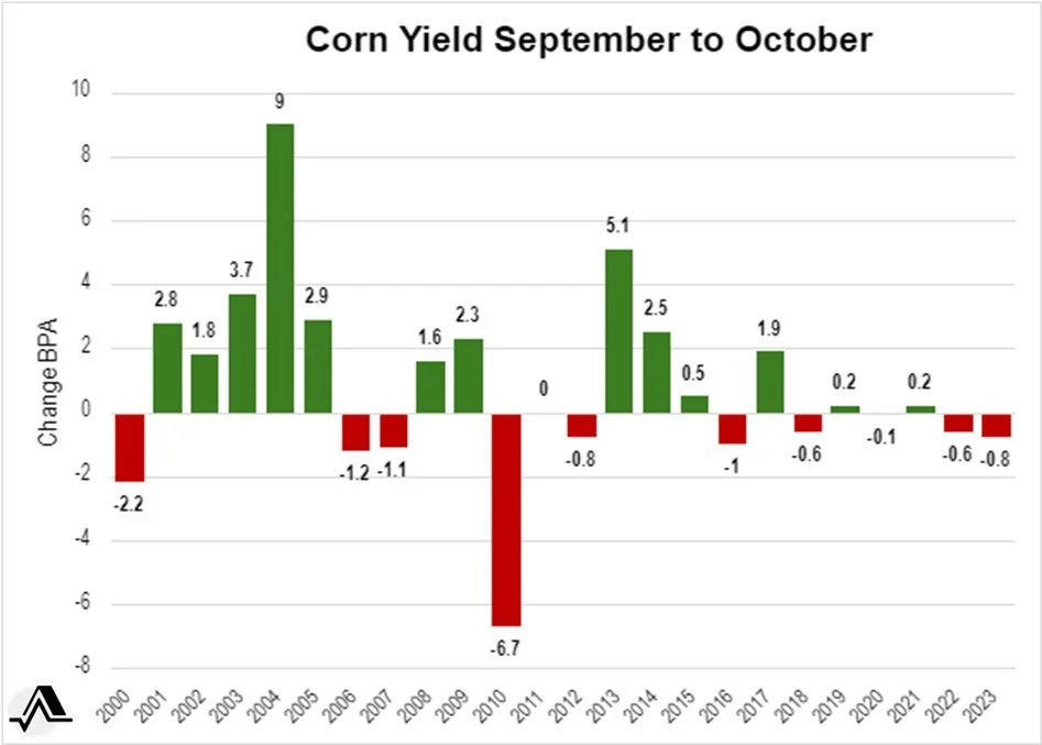 Here is past corn yield changes from Sep to Oct.