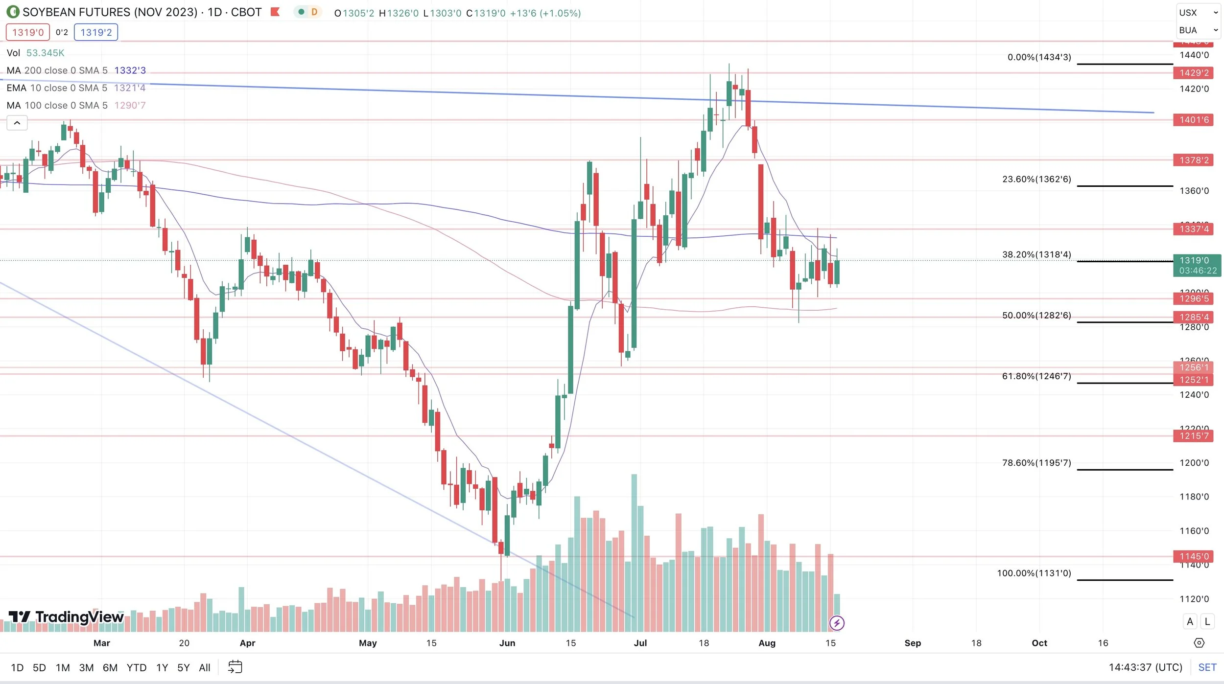 We are back below $6. Wouldn’t be too surprised to see us test our May 31st lows of $5.87 1/2 before finding a bottom. Bulls need to get back over $6.06.