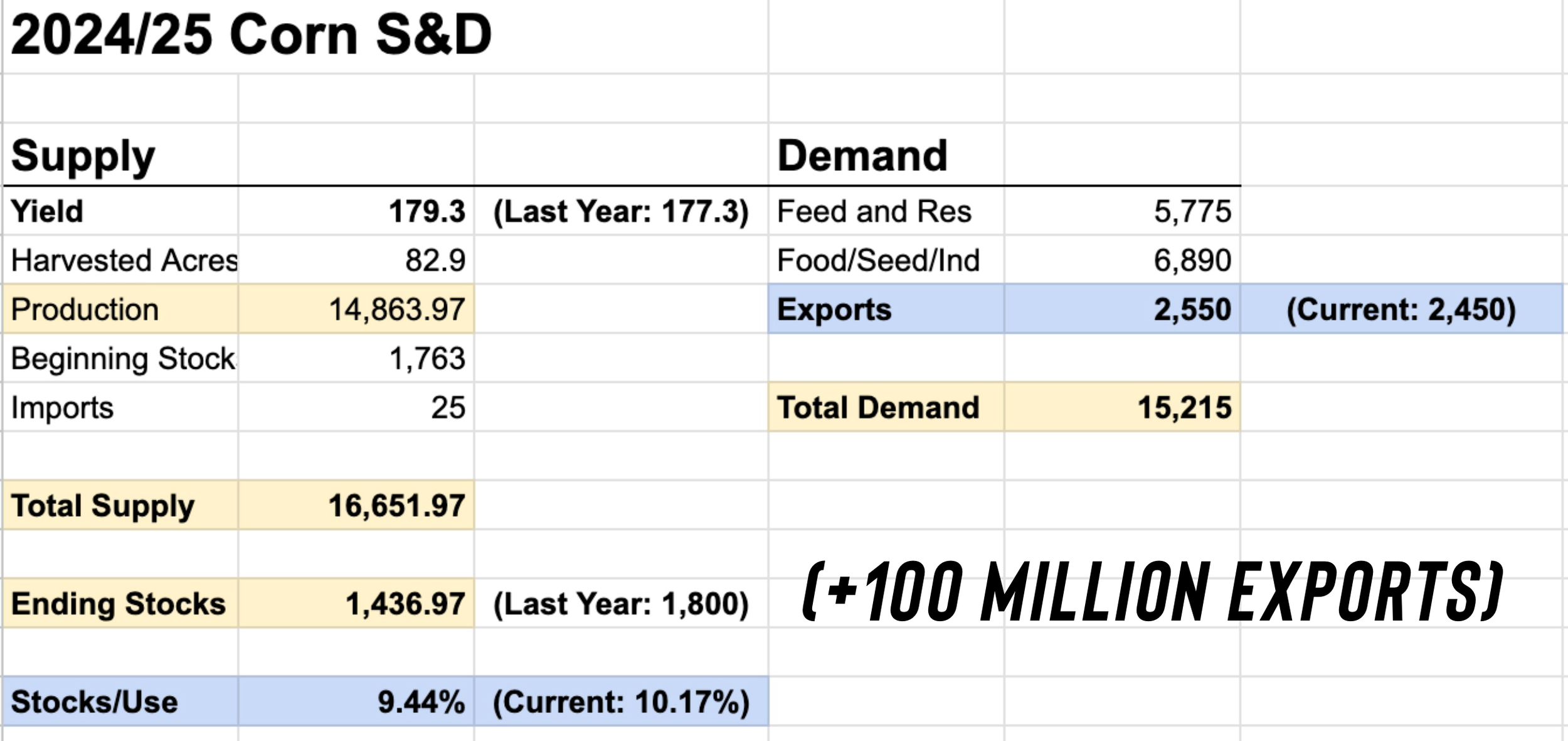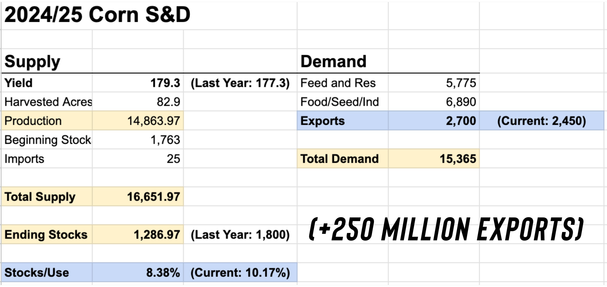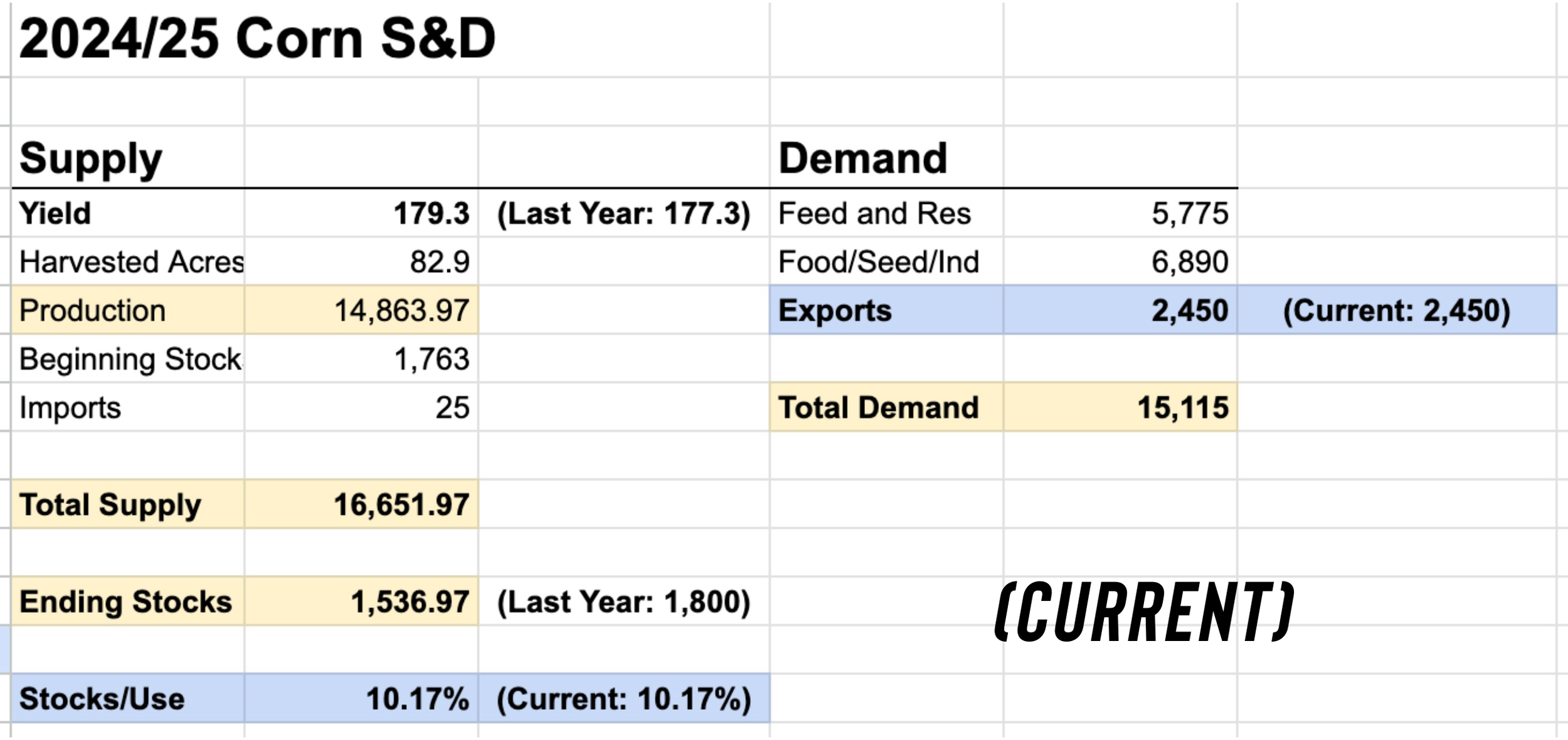 USDA TOMORROW. LONG TERM PATH FOR SUB 10% CORN STOCKS TO USE?