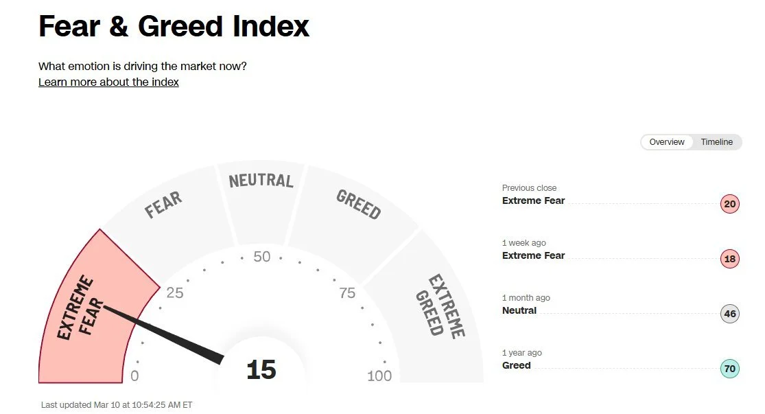 The stock market fear & greed index dropped to it's most fearful since 2022.