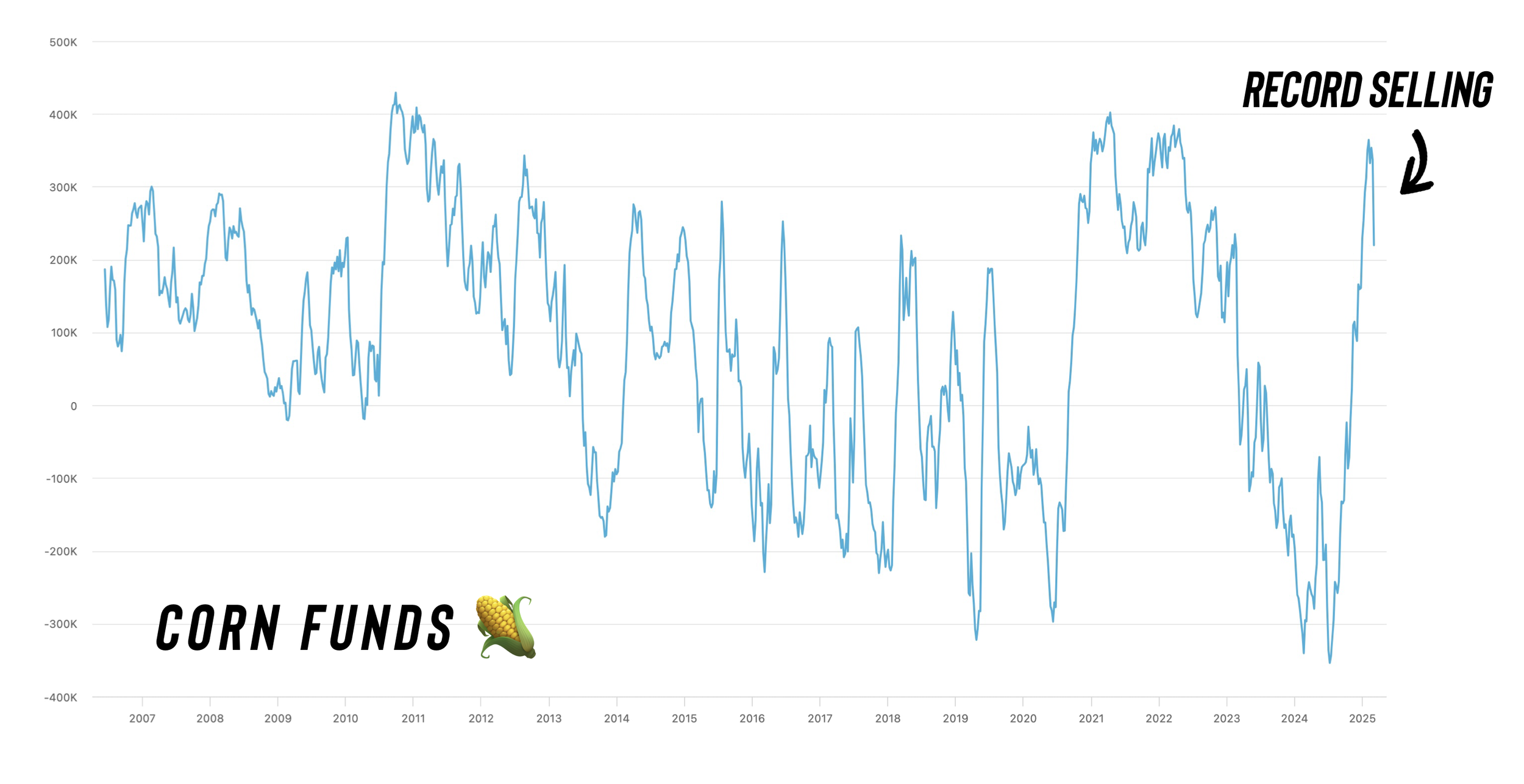 Through March 4th, the funds cut their long corn position by -118k contracts.