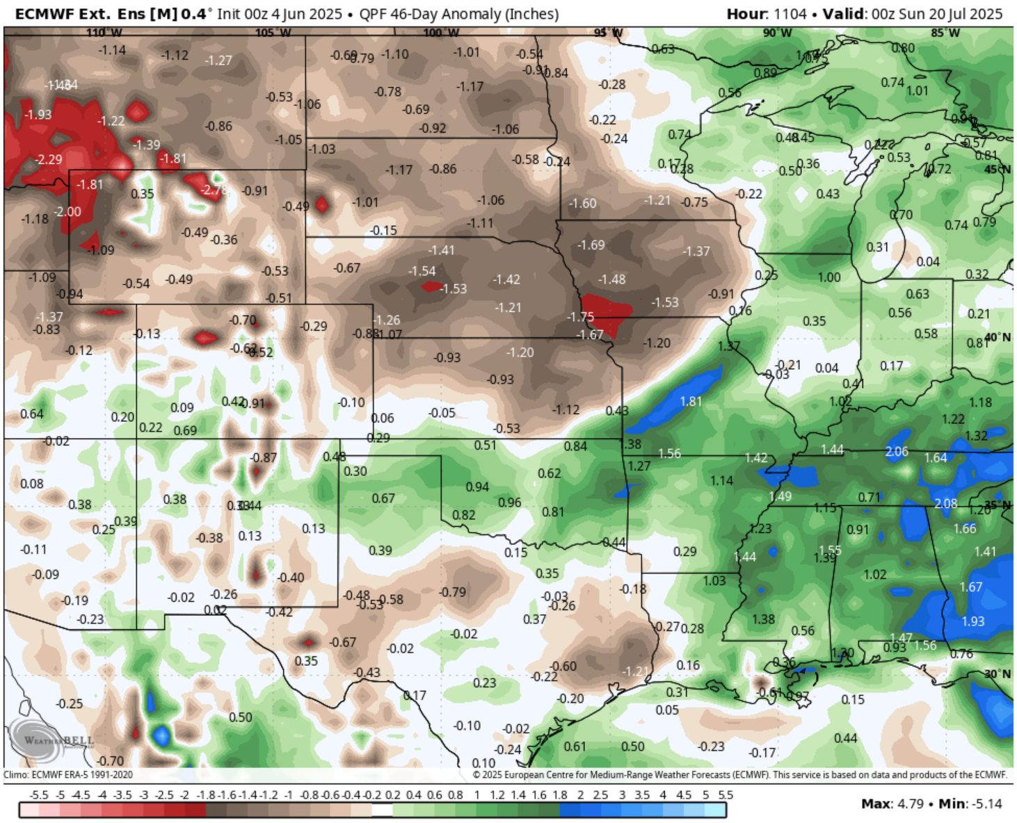 Not saying we will have a crazy drought, but think we should see some weather premium at some point if these forecasts hold true.