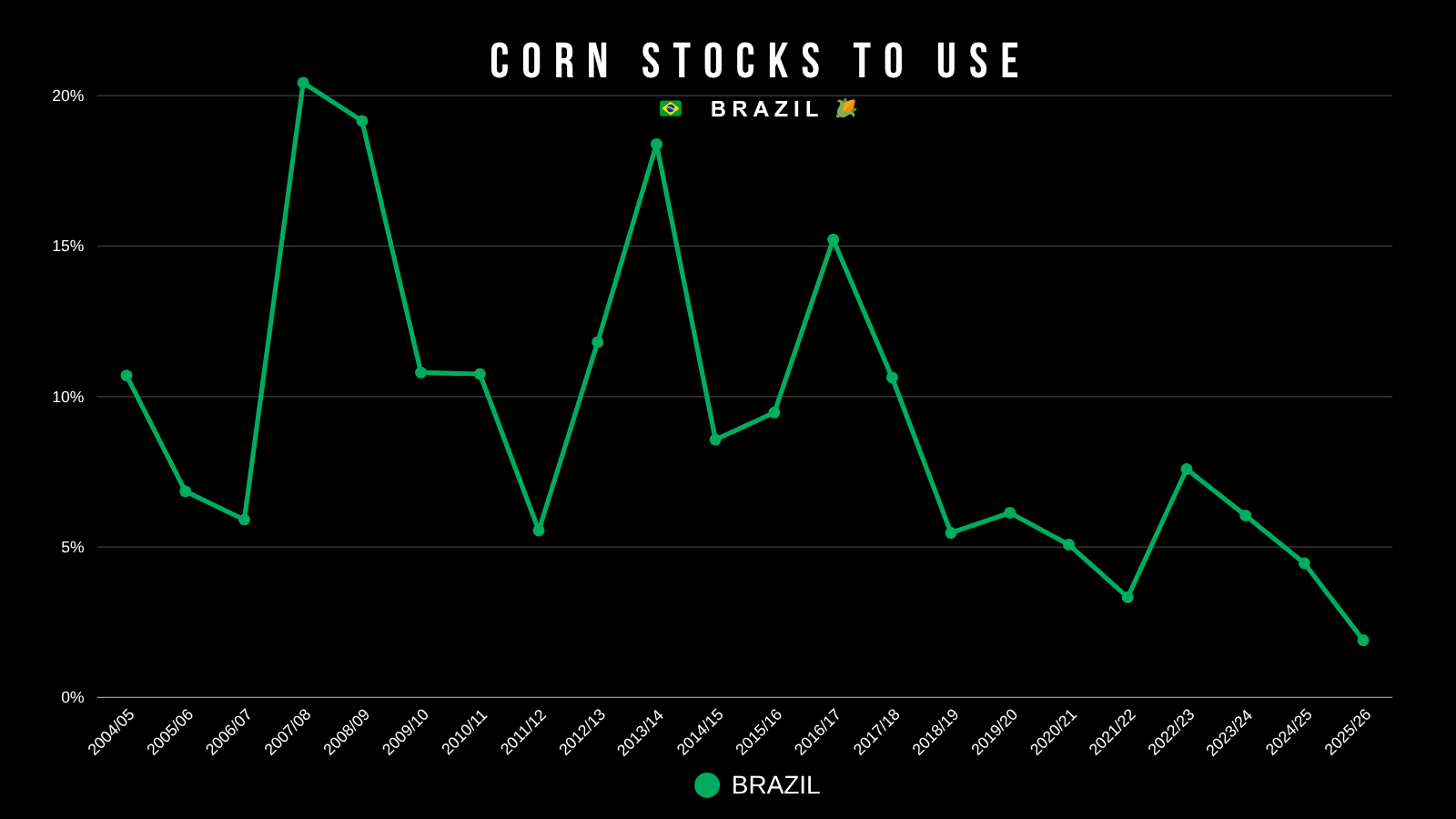 I showed this chart earlier this week, but this is Brazil's stocks to use ratio.