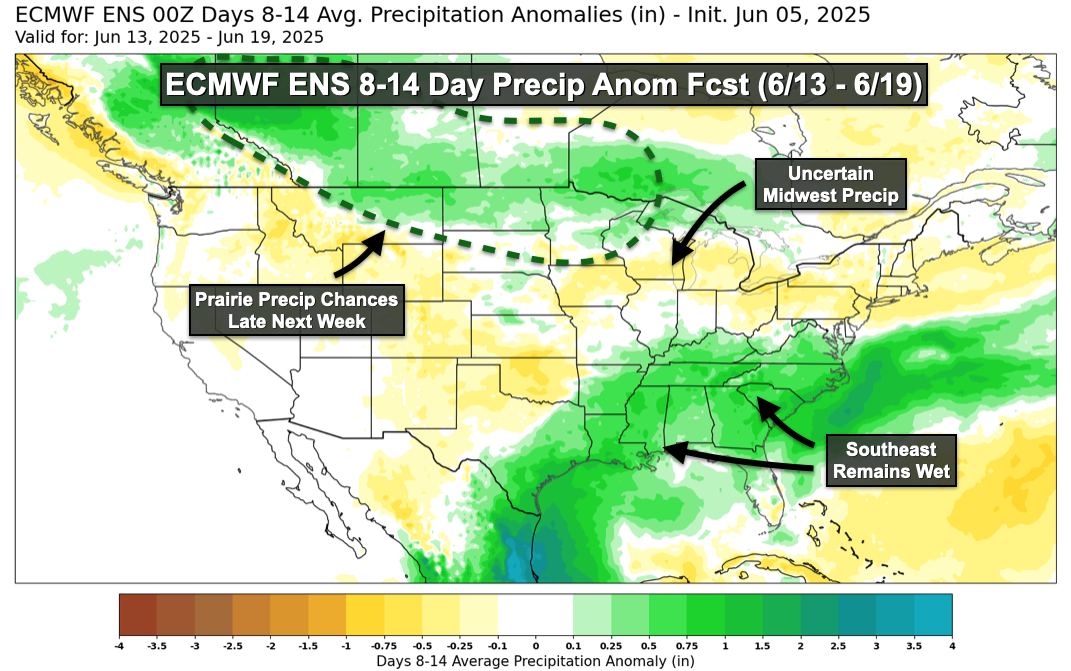 The 8-14 day outlook also leans dry for Iowa and some of those same areas, but with more rain up north.
