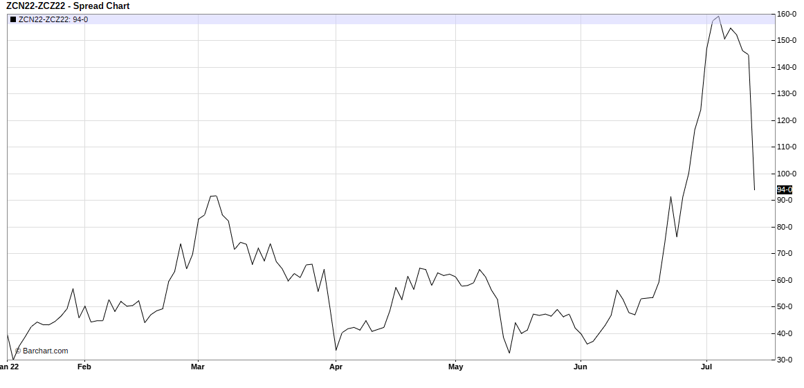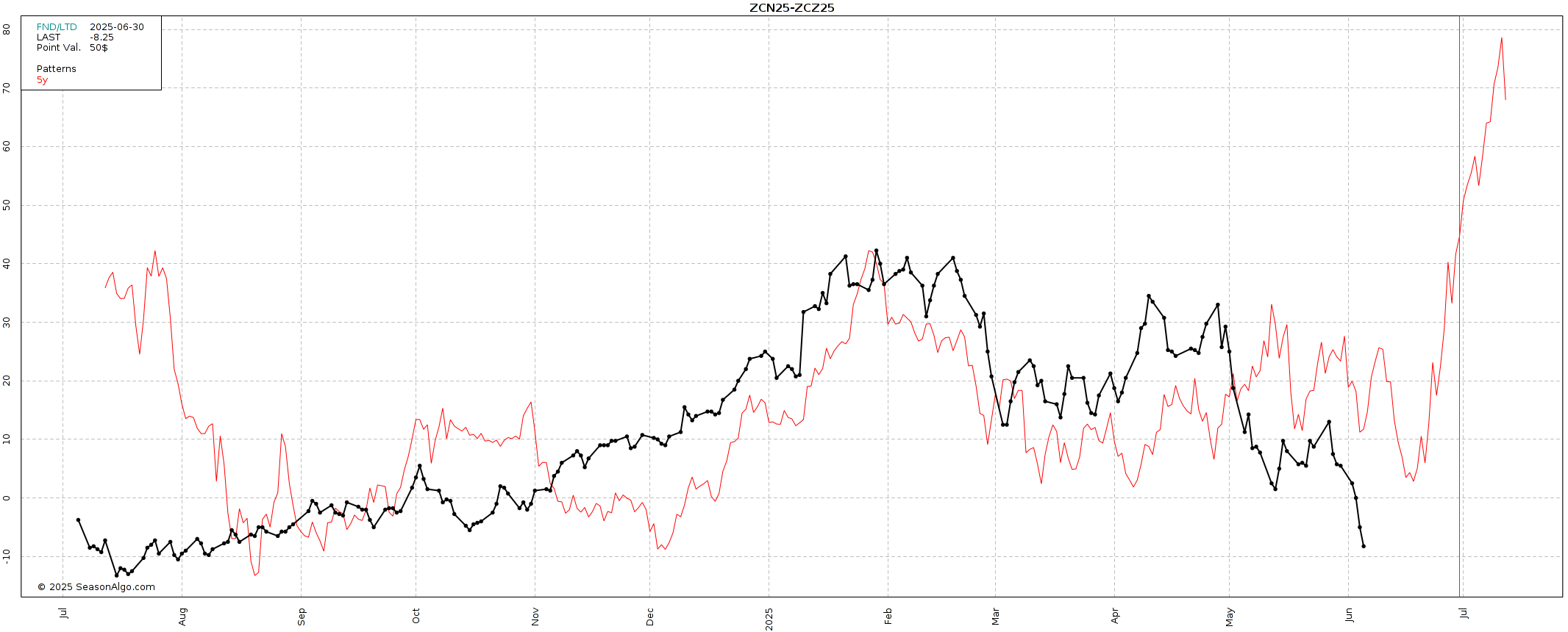 Dec-25 corn is now trading at an +9 cent premiuim to July-25 corn as the spreads continue to fall apart.