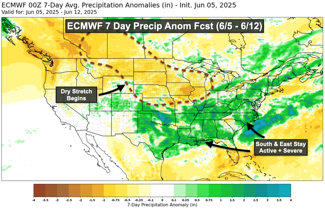 Iowa and the rest of the western corn belt still looking dry while the eastern corn belt remains wet.