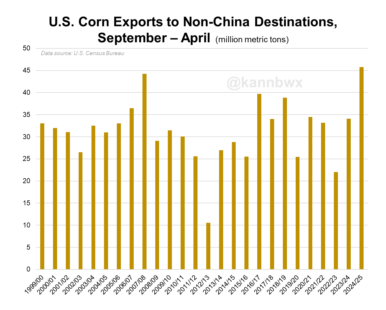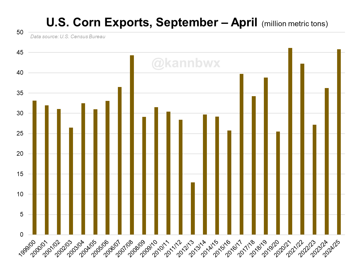 China hasn’t been a big corn buyer, but even if you look at exports including China we have exported the 2nd most corn ever.