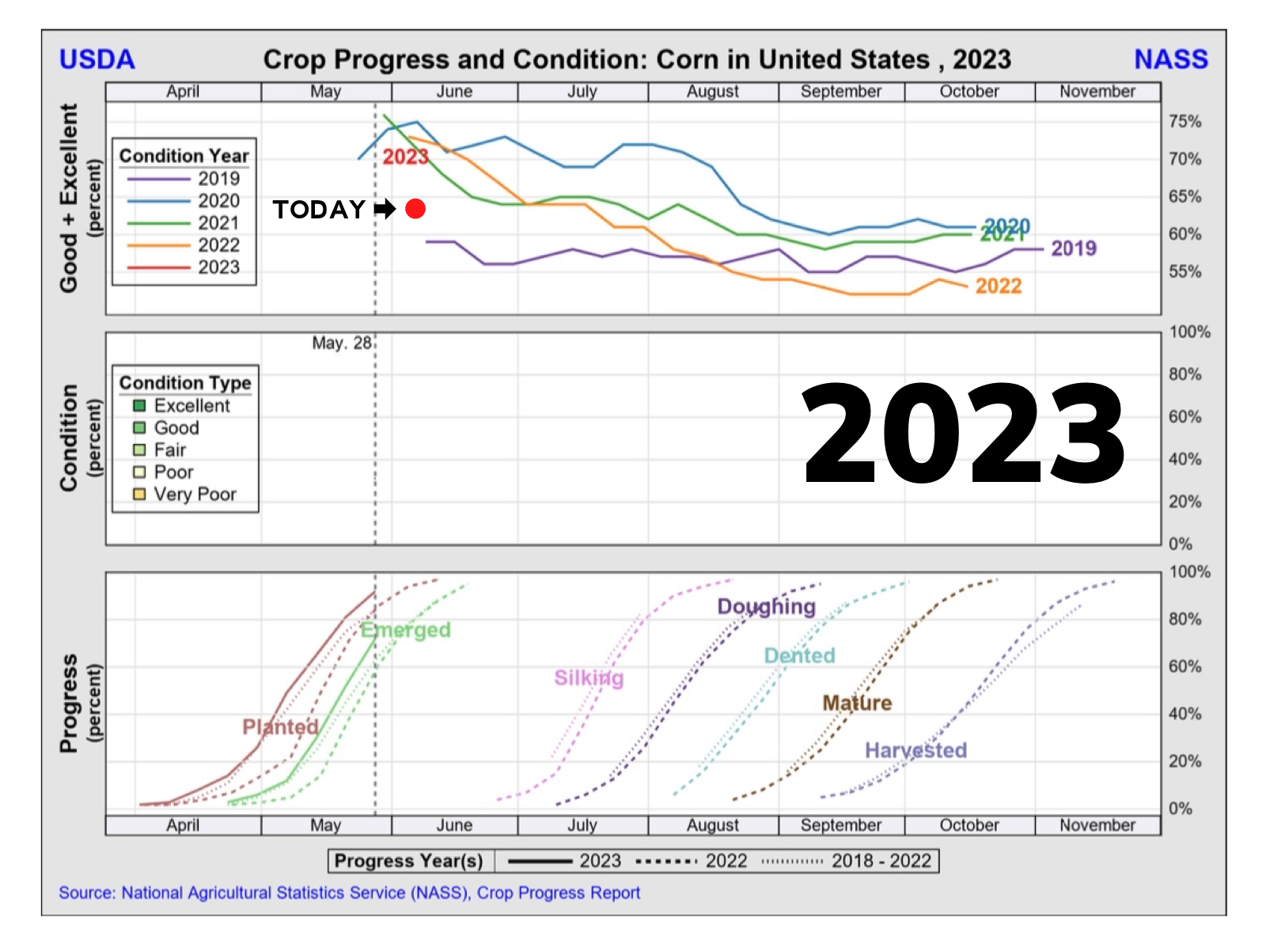 Corn came in at 96% planted, which is above the traditional pace of 91%. But again, keep in mind fast planting just means it is drier than normal.