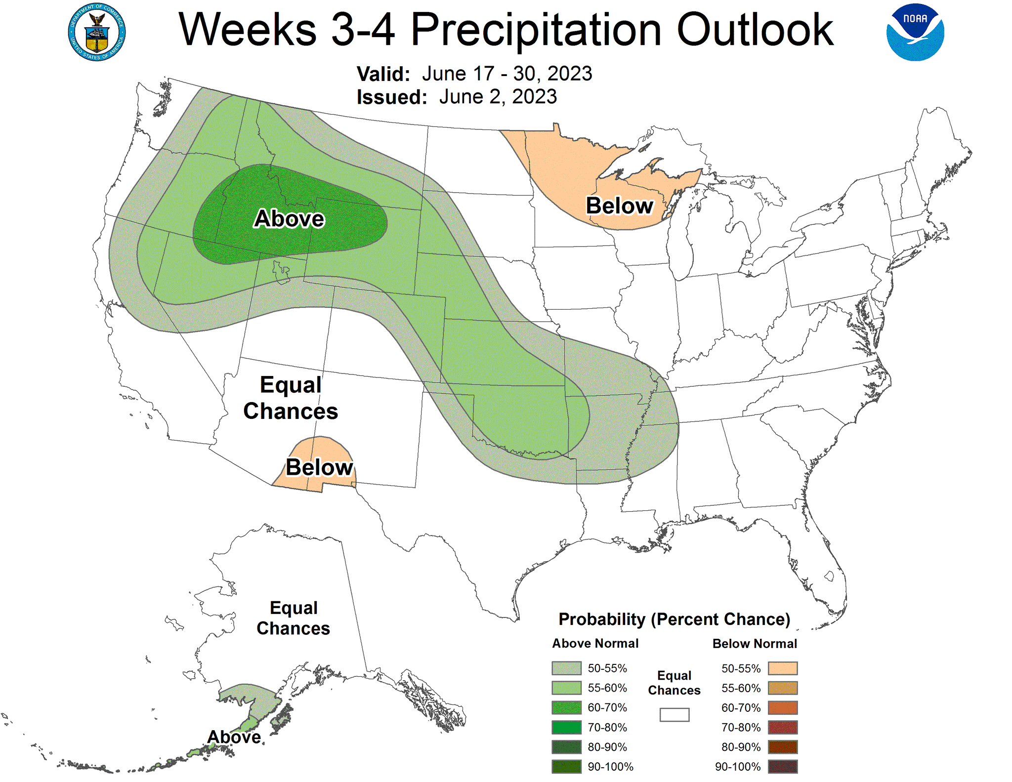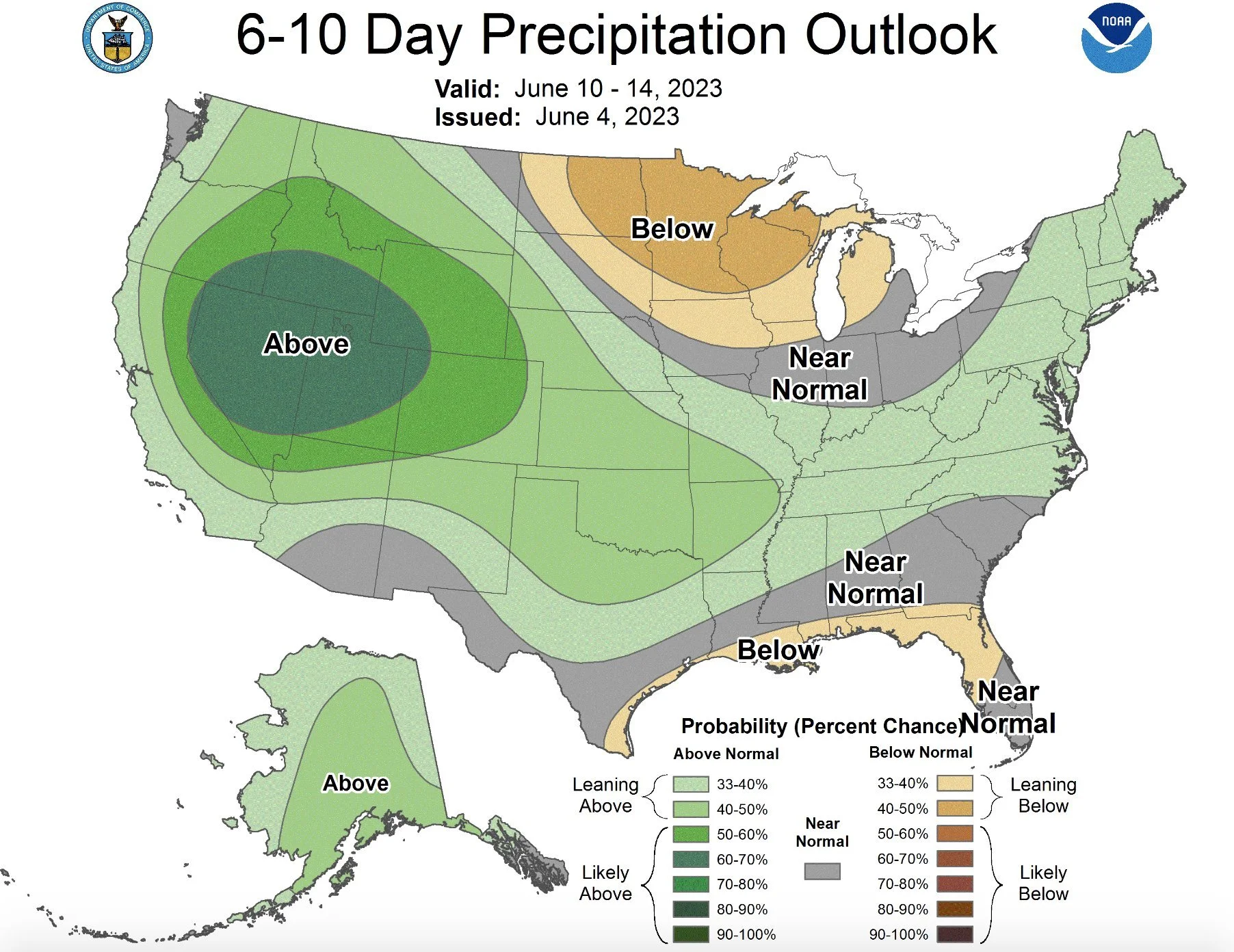 The dryness concerns haven’t provided quite as much support for the bean market as it has corn. This is due to the forecasts calling for potential rain later in the month of June. Which would be fine for the beans. As we make or break our corn crop in June, while make or break our beans late summer.