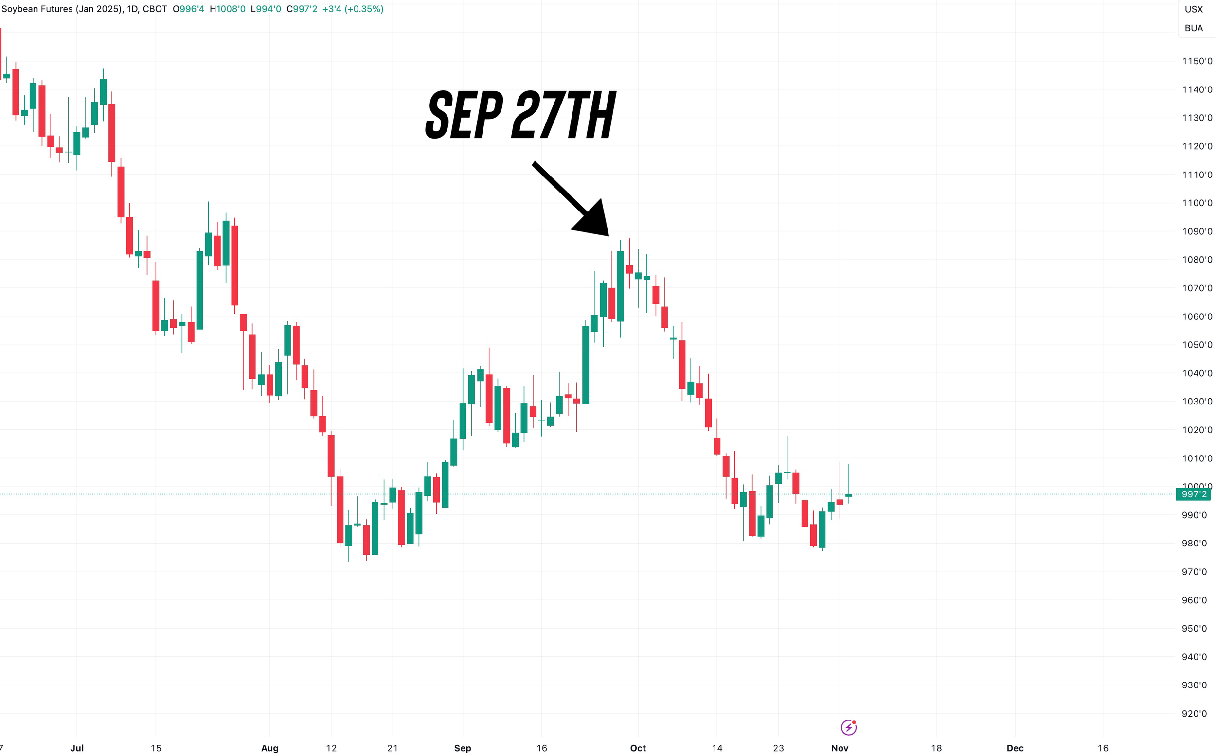 Here were the betting odds on September 27th when soybeans made their recent highs.