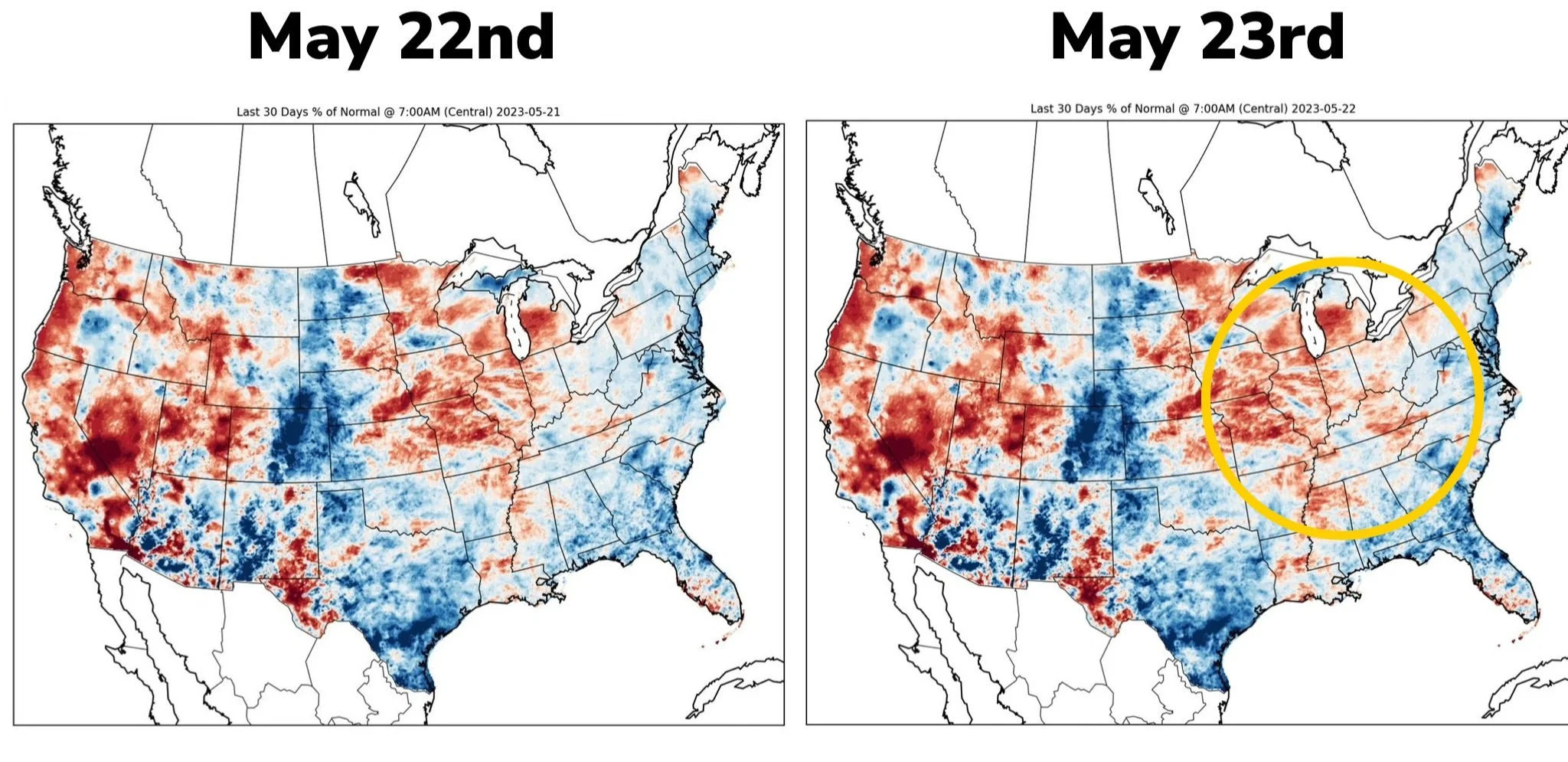May was very dry. This was good for planting, but when do we start seeing this become a big problem for production?