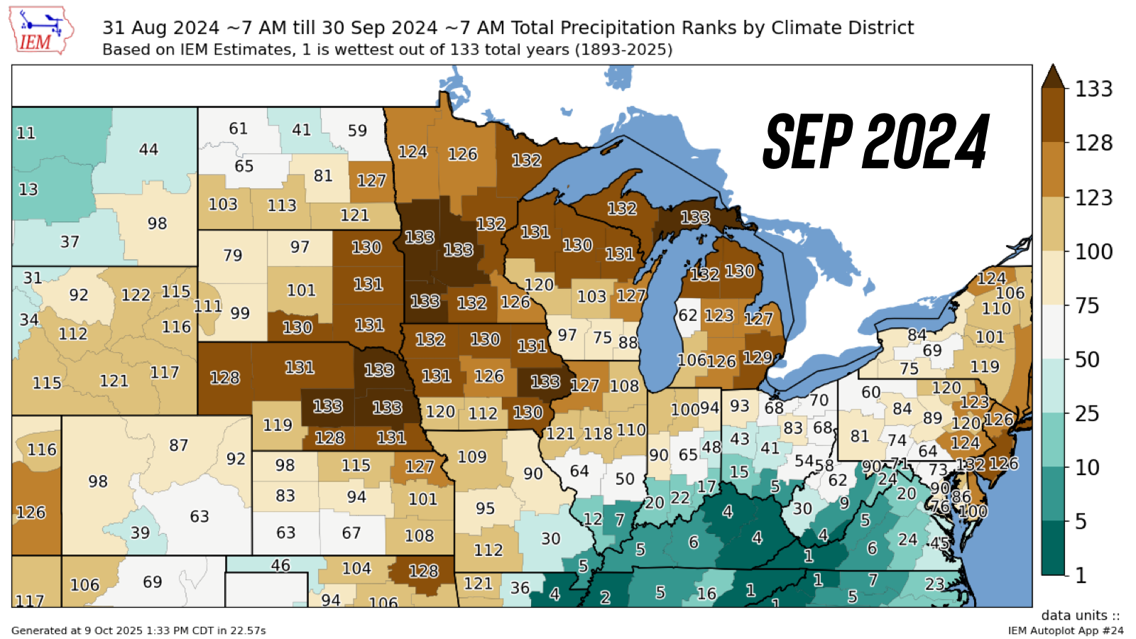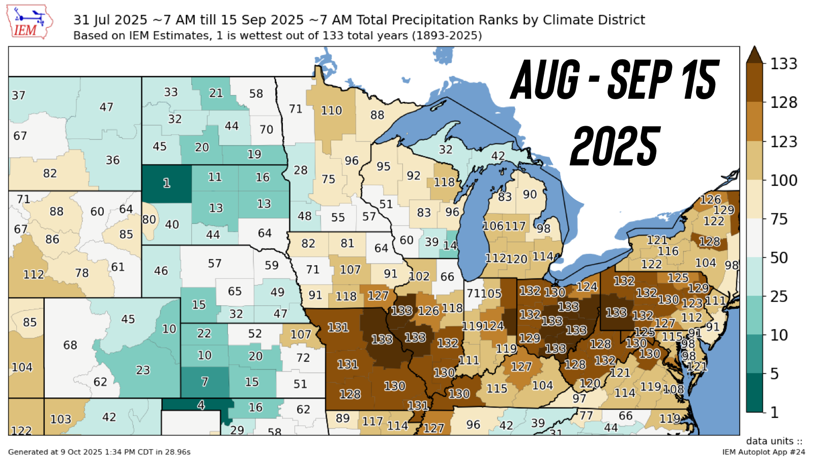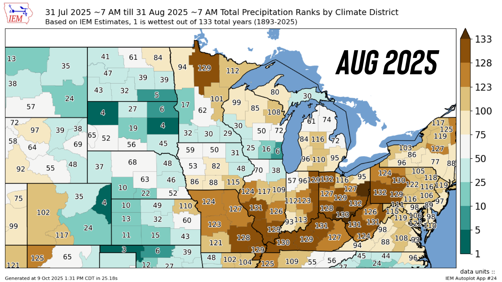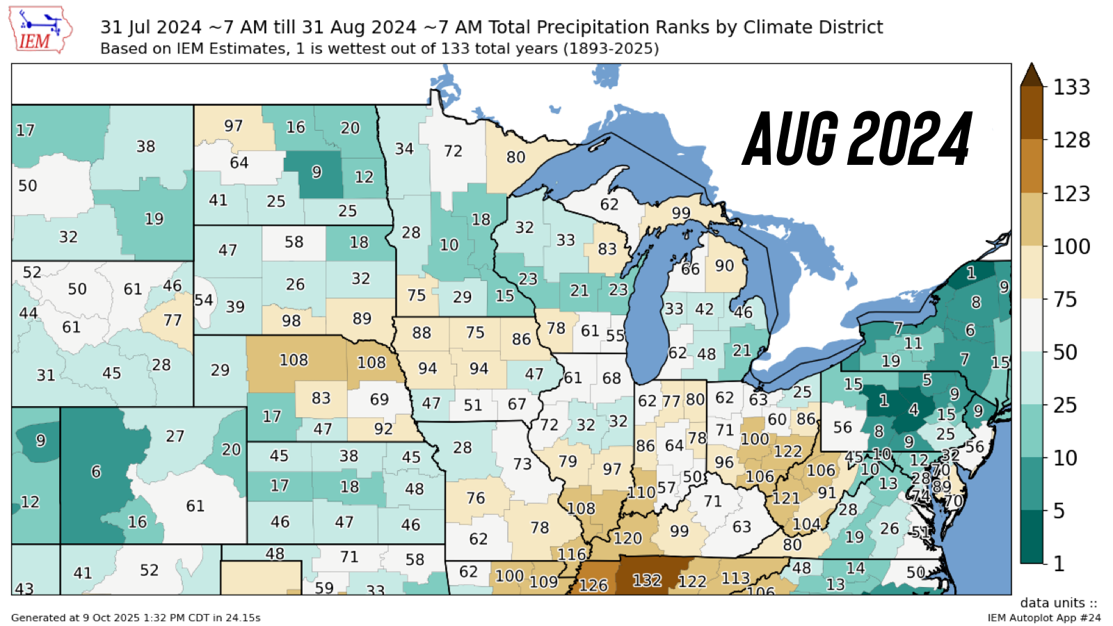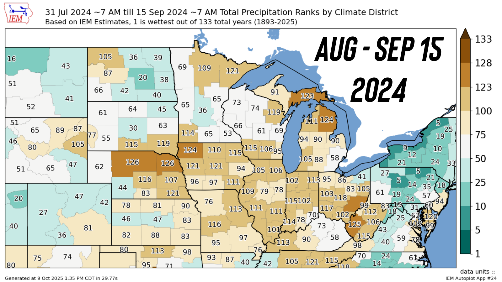 2025 was a lot drier especially in the southern and eastern corn belt. Meanwhile, August wasn’t particularly all that dry in 2024.