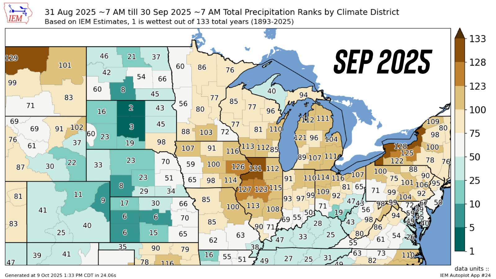 With areas of Iowa, Nebraska, South Dakota, and Minnestoa all seeing one of the driest Septembers of all time.