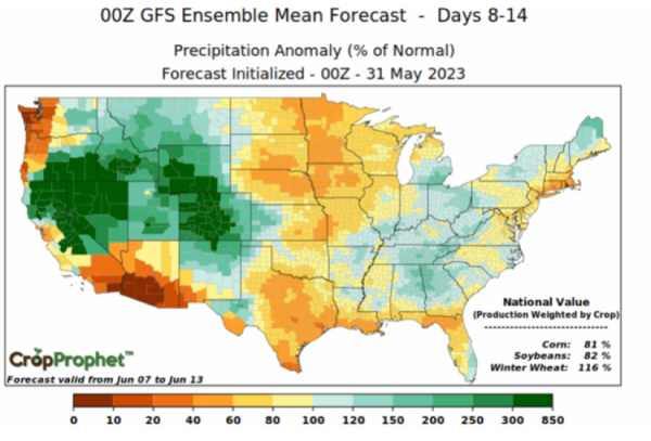 Forecasts are looking very dry for the first part of June. This is after coming off of a near record dry May. So even if rainfall is slightly below average, it doesn't make for a very ideal situation coming from such a dry May.
