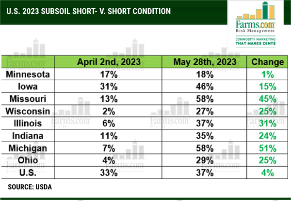 We saw intial crop conditions come in at 69% rated good to excellent, which is already lower than that of last year's. If it stays dry, I can’t imagine we see this number improve. As we had been mentioning for the past few week's before the initial ratings came out, we still think that this number could very well be the highest number we print all year long.