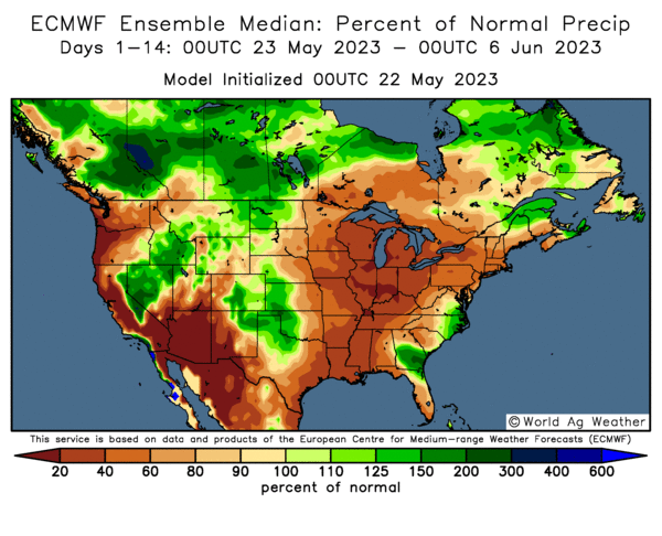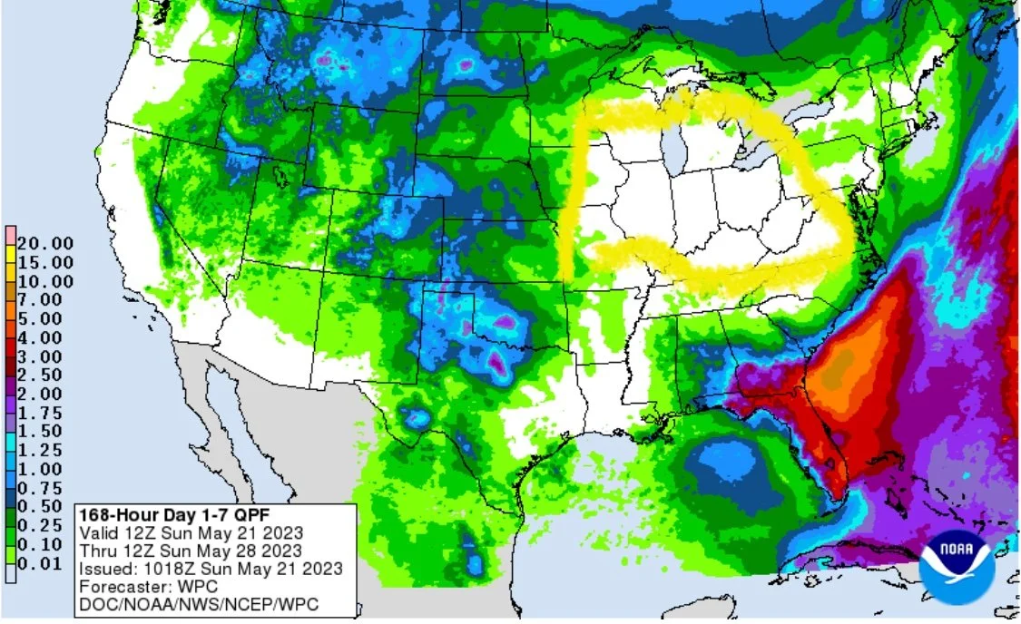 The number one thing supporting corn and the rest of the markets is simply the forecasts looking very dry for nearly all of the corn belt.