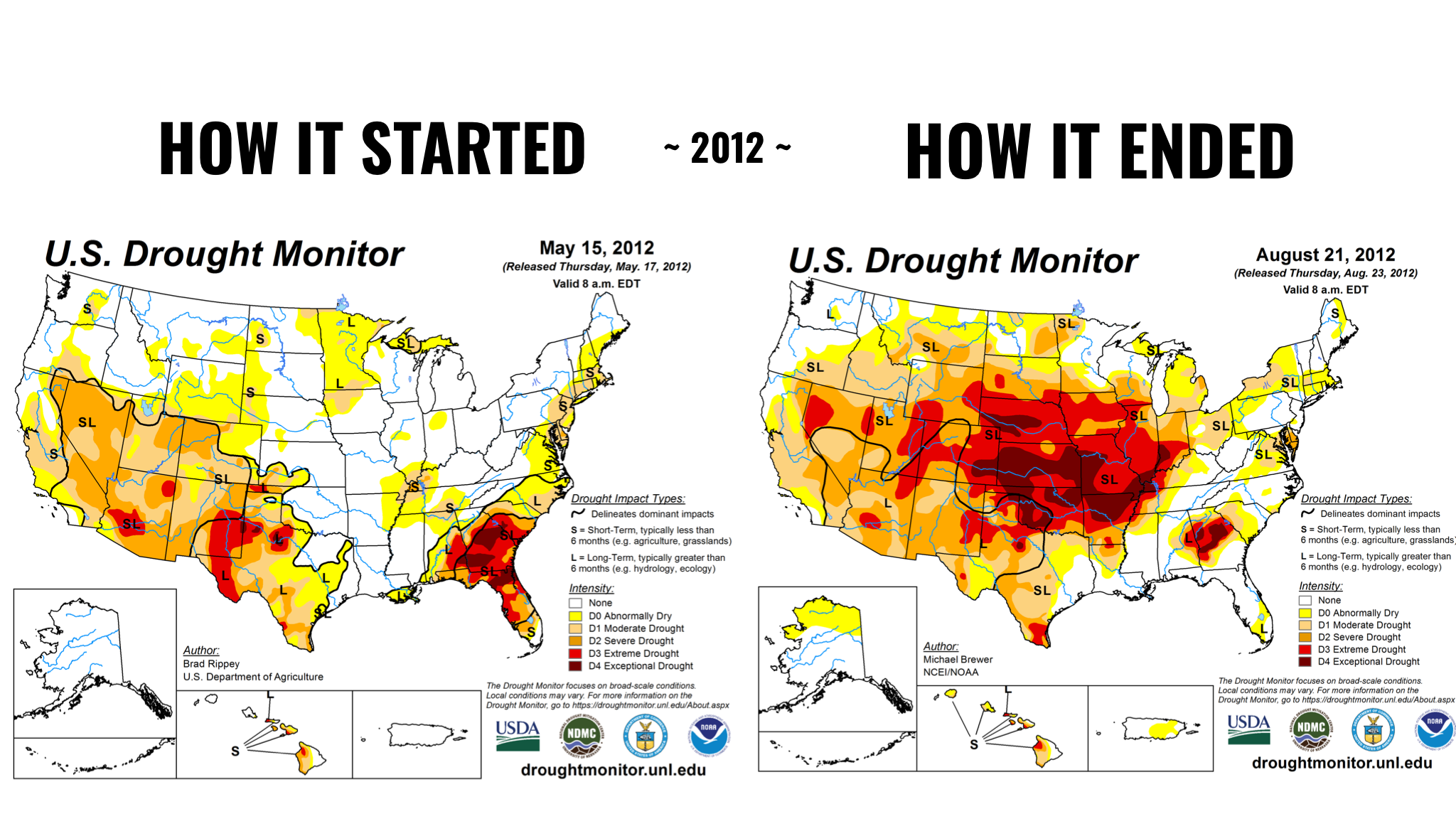Ever since the corn planting got off to a fast start in the I-states, we immediately began pointing out the drought concerns.
