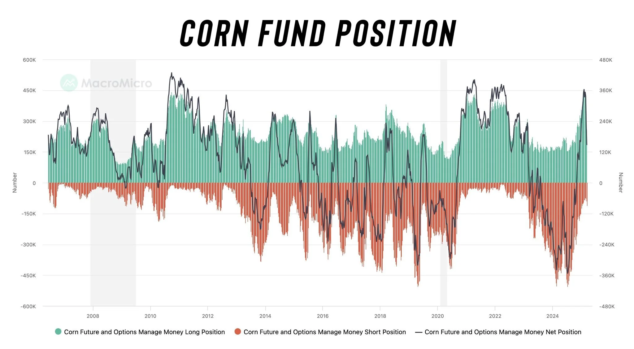 So the funds are not getting "short" corn. They simply reduced their long exposure due to the tariff uncertainties.