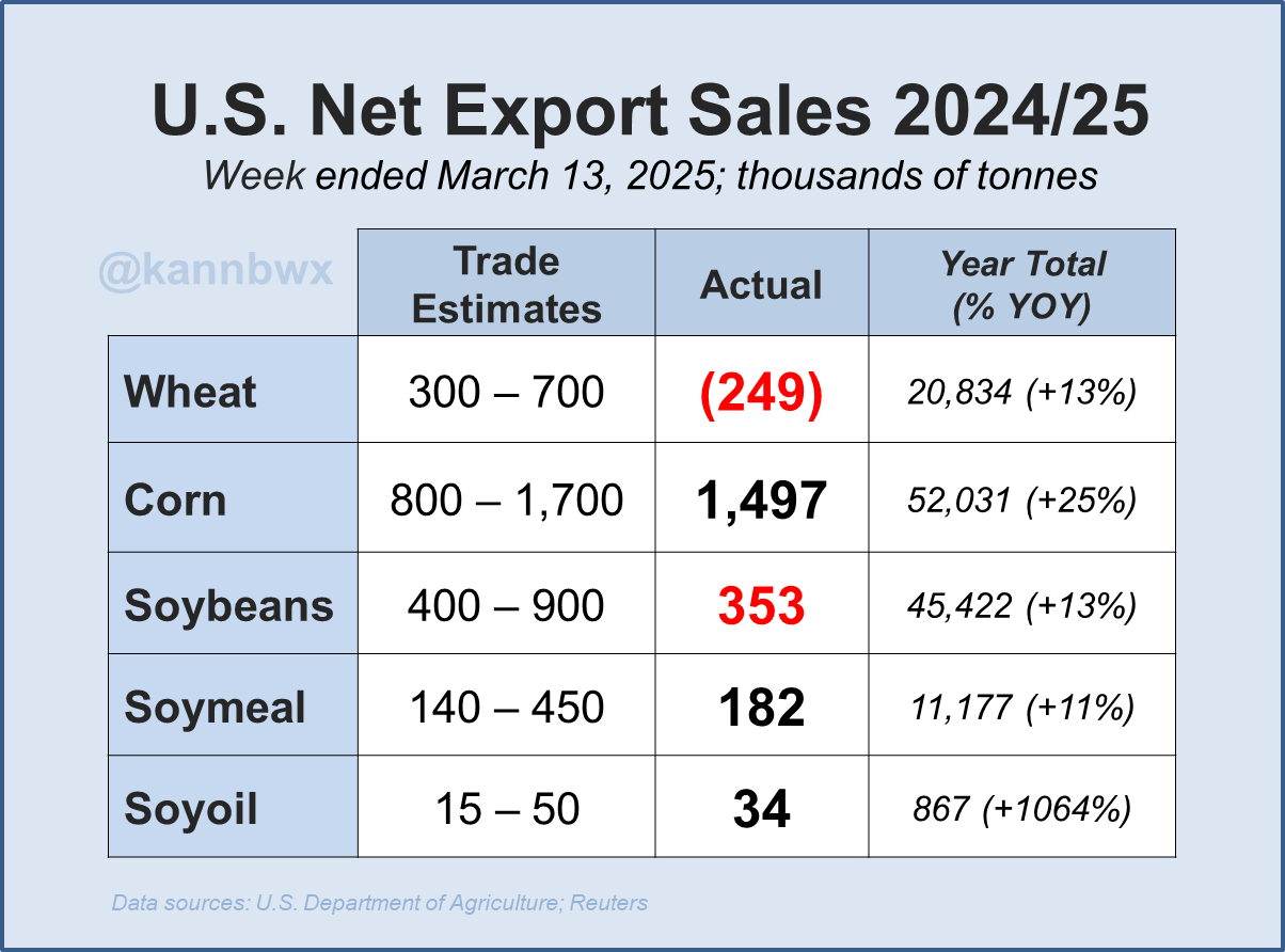 We saw wheat sales actually come in negative this week. As there appears to have been incorrectly reported numbers out of Panama last week. This is part of the reason for the weakness in wheat today.