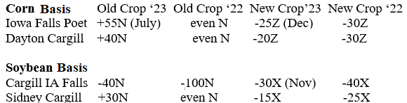 Take a look at basis for this date 2023 compared to 2022 for corn and beans: