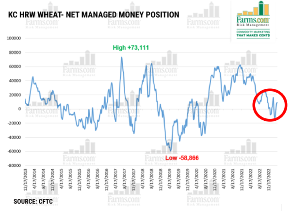 Kansas produces 25% of the total UI.S. HRW production, but a drought for the last 8 months is resulting in a very high abandonment of acres with some forecasting as much as 30% and average production will fall from 300 million bushels to 200 million. Kansas led the downside with 60% of its winter wheat rated P-VP with 57% of Kansas is in drought, along with 43% of Oklahoma, 29% of Nebraska, and 18% of Texas. Add the fact that the Black Sea Grain Imitative may not get renewed on May 18th and the risk to futures is to the upside longer-term as funds continue to ignore the fundamentals near-term as they continue to worry and sell for the wrong reasons as the macroeconomic clouds continue to gather.