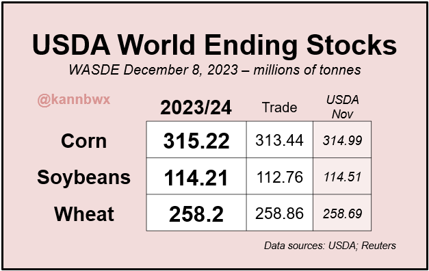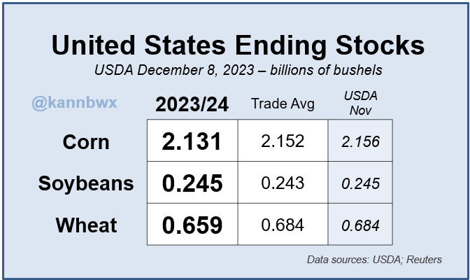 Corn and wheat came in below expectations while the balance sheet for soybeans remained the same.