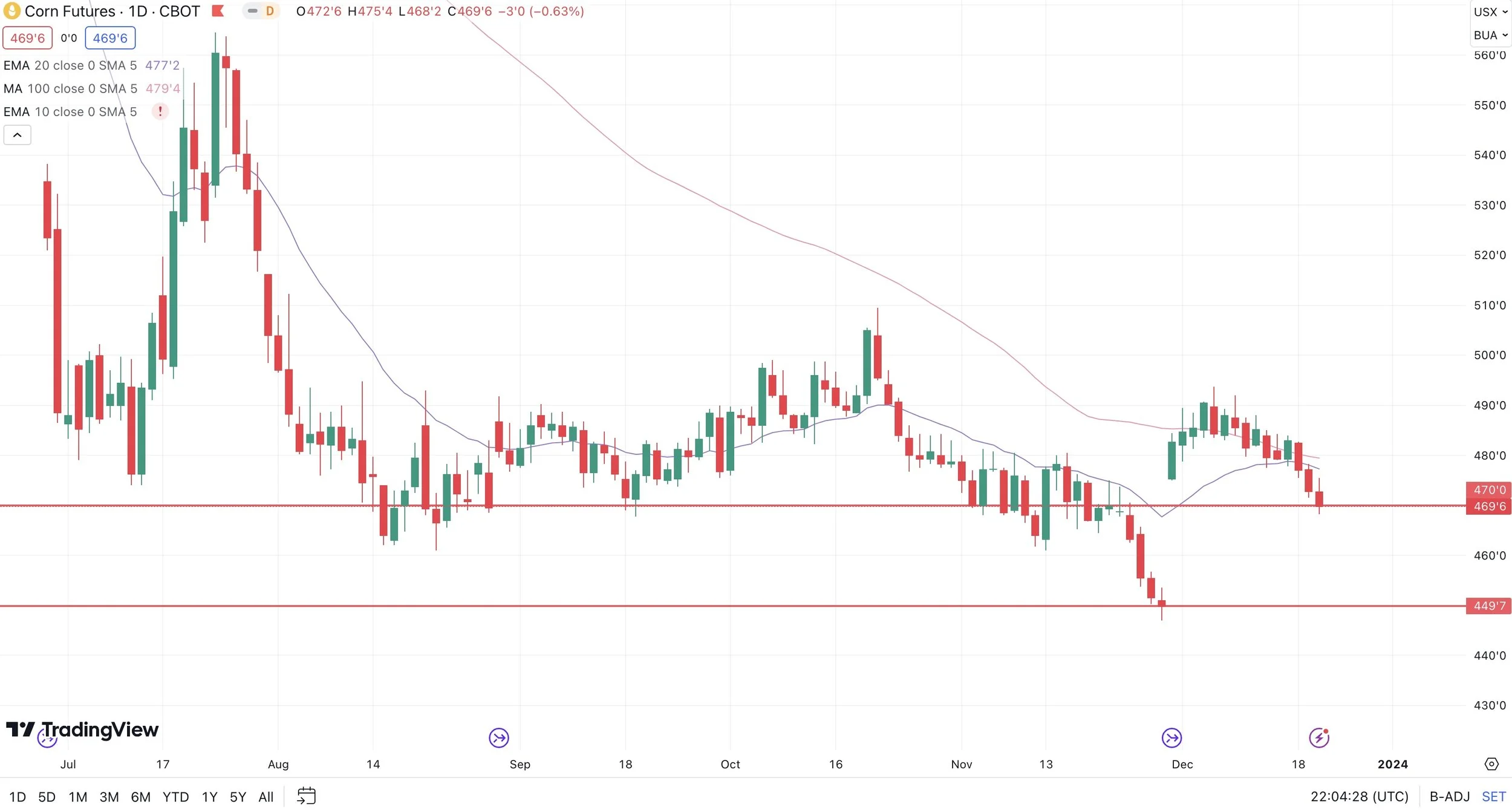 This is the risk we have been talking about the past few weeks. We did not hold $4.70 today. Our risk is that we head towards where the December contract went off the board. Similar to how the December followed the September. That downside risk is the $4.50 area.