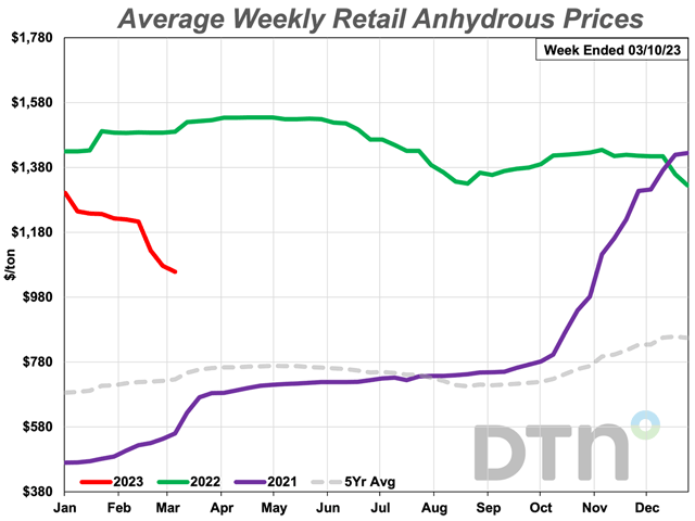 Anhydrous was 13% cheaper than last month. With an average price of $1,059 a ton.