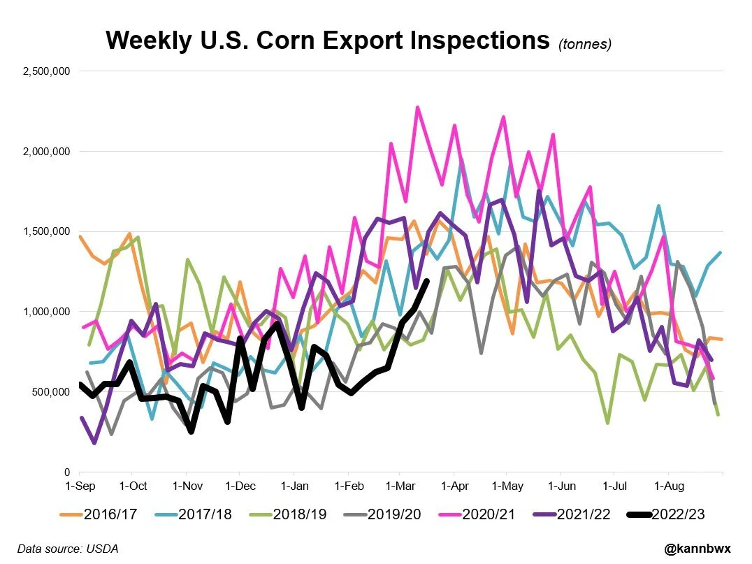 Also last week, it was announced that the funds have been liquidating a significant amount of their long positions since late February. It now seems end users and likely China were buying old crop corn during the pullback.