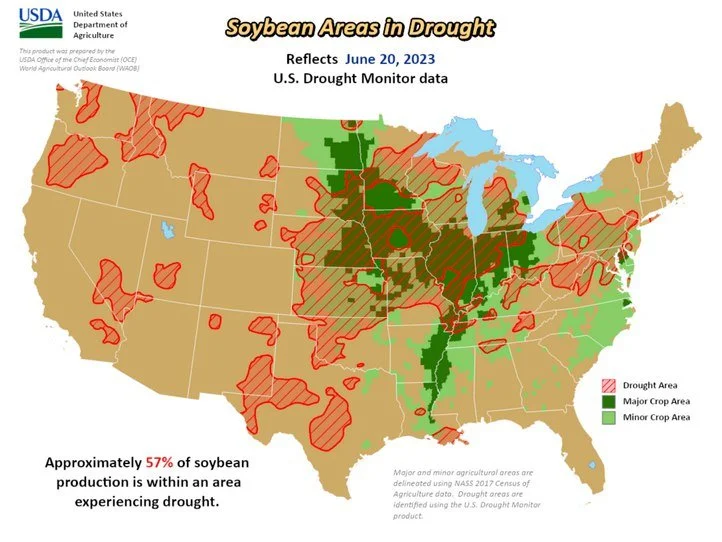 57% of US soybeans are in drought. A 6% increase from last week and a big 37% increase over the last 4 weeks.