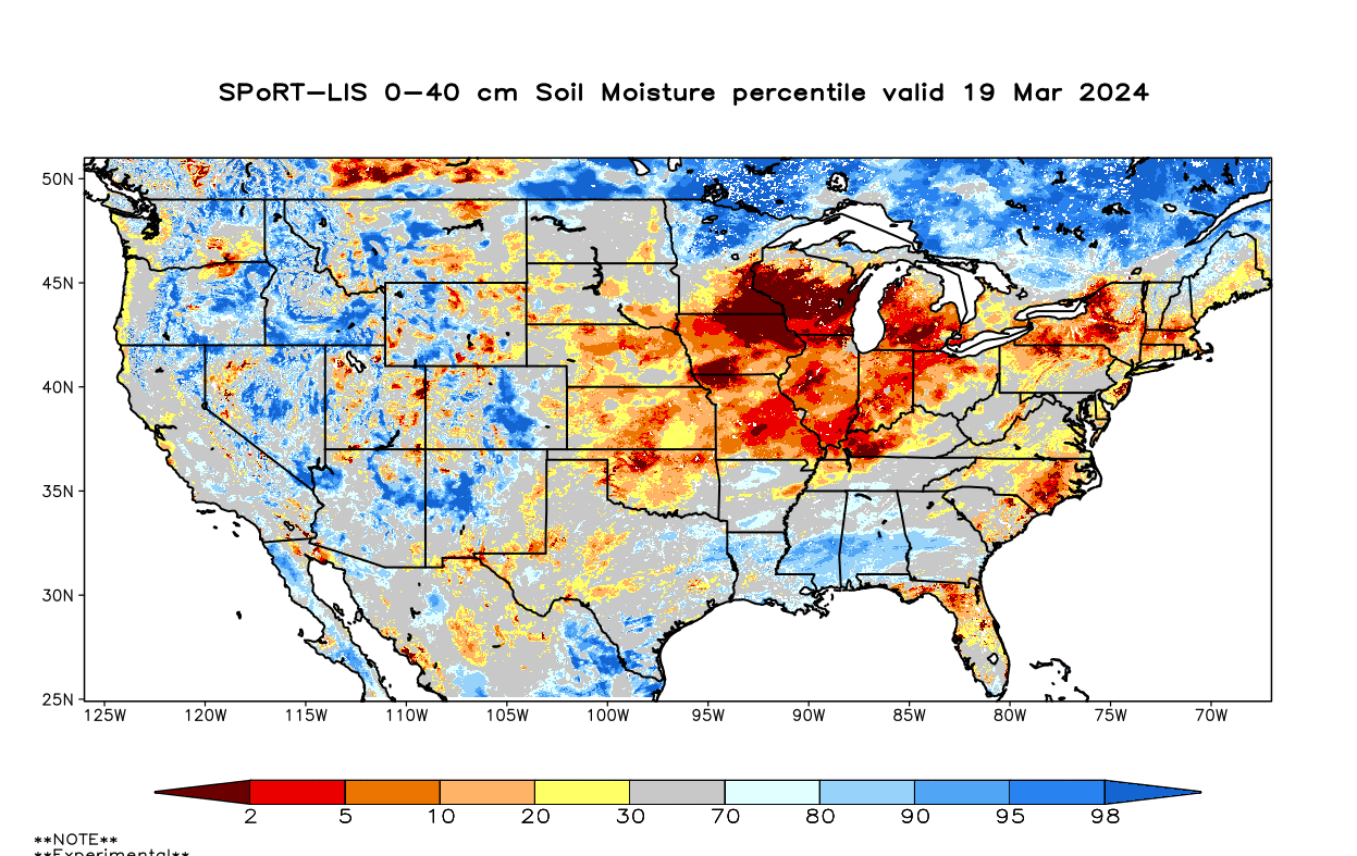 Precipitation is finally expected for the US, and a lot of it in areas such as Iowa who have suffered from a lack of precipitation all winter thus far.