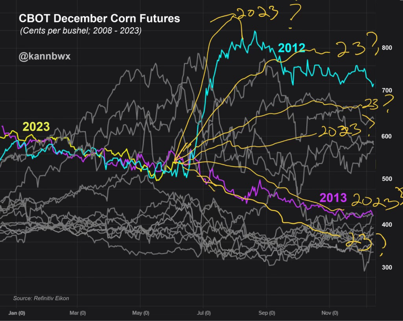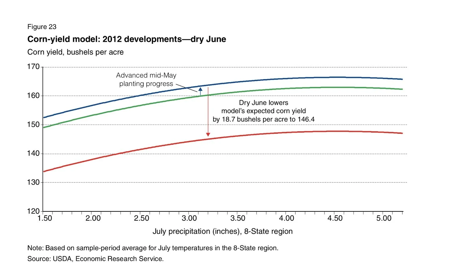Here is what CHATGPT says is possible based on present drought conditions staying worse then 2012. It believes that we have a chance of 165 yield in July, considering worse crop conditions then a year ago and an increase in the midwest drought conditions versus 2012. Obviously it goes without saying that Mother Nature over the next 30 days will really dictate what happens on the July USDA Crop Report.