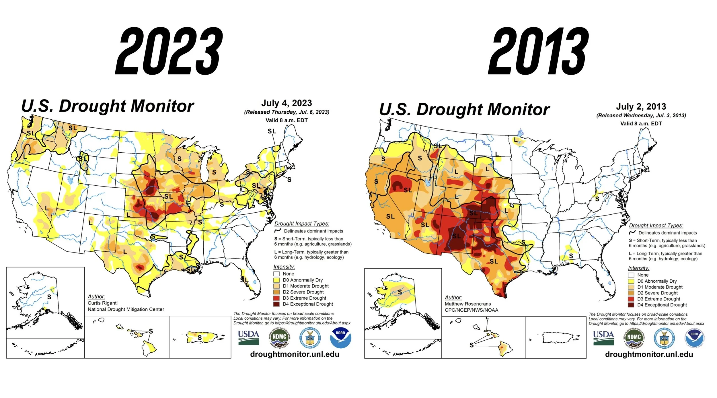 Take a look at how our drought situation back in early July compared to that of 2013.